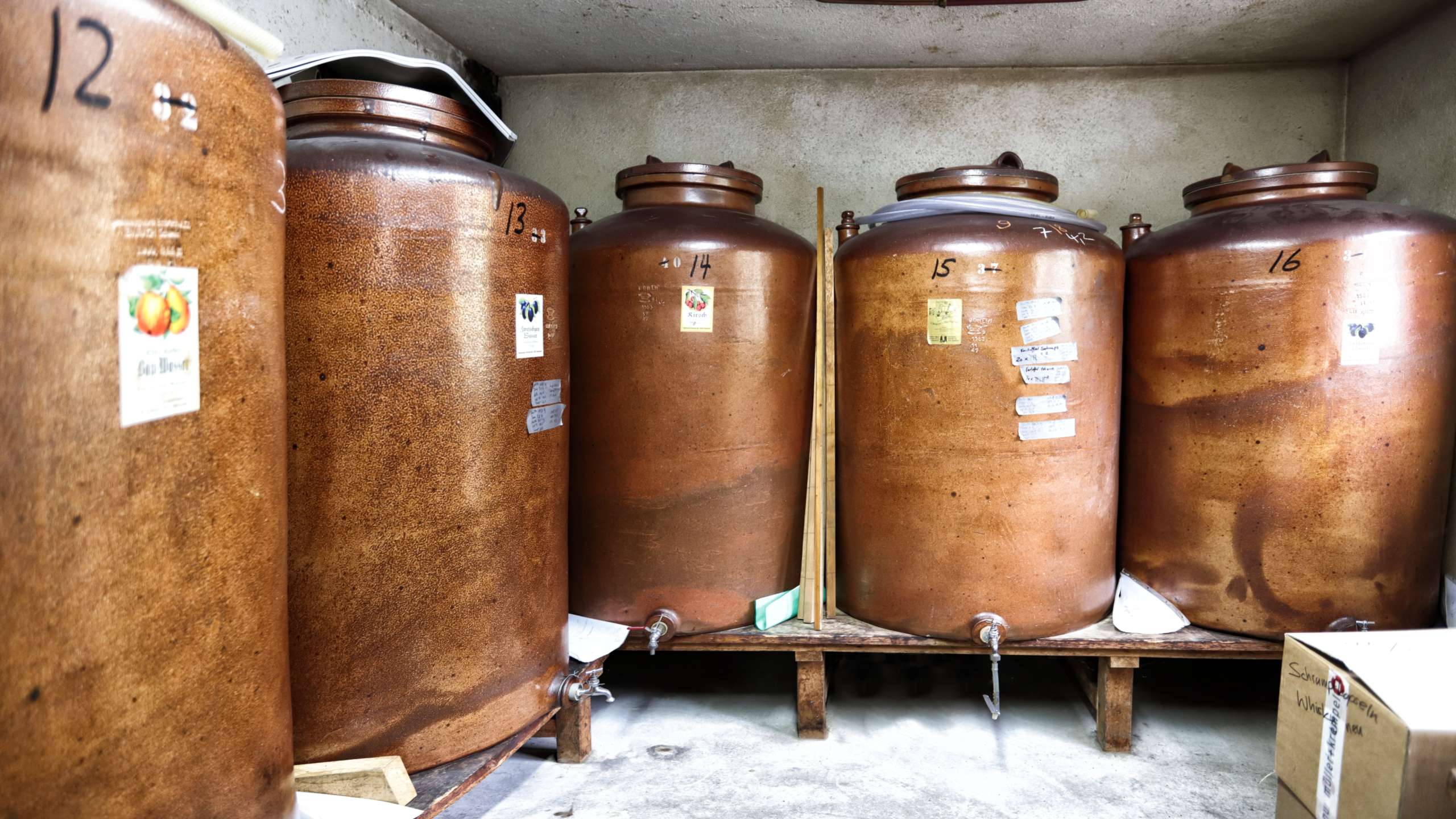 Kramers Schnäpse sind bekannt für ihren abgerundeten Gout. Nichts von einem Alkoholton, der dafür zeugen würde, dass es da einer mit dem Brennen nicht allzu genau oder allzu hastig genommen hat. Aus dem Nichts kommt eine solch abgerundete Frucht nicht. Die Familie Kramer kann sowohl von einem Erfahrungsschatz aus über einem halben Jahrhundert zehren als auch darauf stolz sein, dass sie das Brennen mit exakter Genauigkeit betreibt. Immer wieder justiert Simon da und dort etwas am Brennhafen – um die Temperatur nicht zu heiss werden zu lassen, um die Durchflussgeschwindigkeit nicht zu schnell oder zu langsam werden zu lassen, um Vorlauf, Herzstück und Nachlauf so genau wie möglich zu trennen. Wir sind beeindruckt von Simon Kramer und seiner spürbaren Leidenschaft für dieses Genusshandwerk. Zum Wohle!