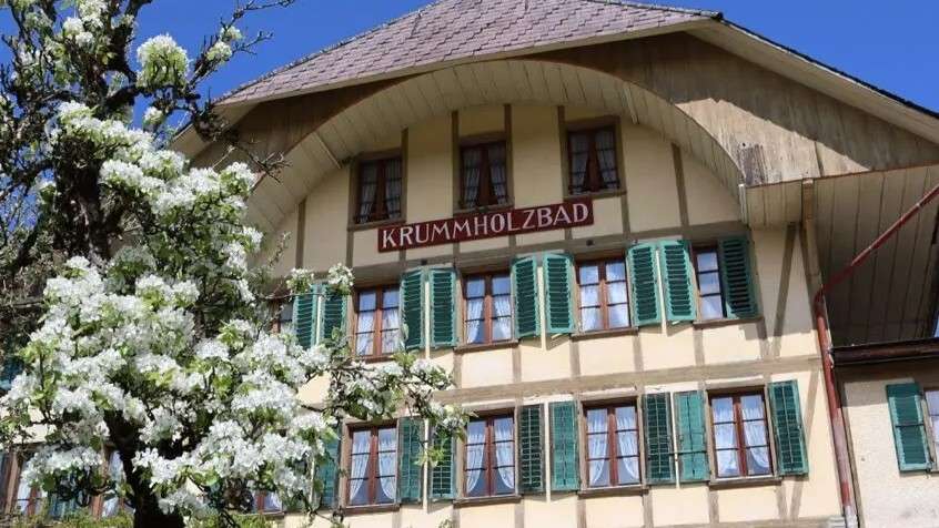 «… Krummholzbad, ein stattlicher, 4-geschossiger Bau mit 6 Logierzimmern und 3 im Nebenhaus (heute Stöckli), 5 Badekabinetten mit 10 hölzernen Wannen. Die Quelle enthält kohlensaures Magnesia und kohlensaure Kalkerde und wird gegen rheumatische Gliederschmerzen und Kopfschmerzen sowie als Reinigungsbad von der Umgebung genutzt …» Nach einem Brand wurde der Gasthof 1878 neu errichtet. Damals wie heute spielen die feine Küche und das kulturelle Angebot im Krummholzbad, das seit 1927 mittlerweile in der dritten und bald vierten Generation der Familie Sommer geführt wird, eine wesentliche Rolle. Im rustikalen Dach-Saal finden regelmässig Lesungen – meist über den bekannten ehemaligen Talbewohner Simon Gfeller – und andere kulturelle Anlässe statt. Zuhinterst im Dürrgraben, der 1968 zu Ehren von Simon Gfeller, Lehrer, Schriftsteller und Ehrendoktor der Universität Bern, in Heimisbach umgetauft wurde, ist im ehemaligen Schulhaus Thal ein schlichtes, aber höchst informatives Museum eingerichtet. Vom Heimisbach auf die Lüderenalp führt zudem ein Wanderweg vorbei am Geburtshaus Gfellers, dem «Zuguet».