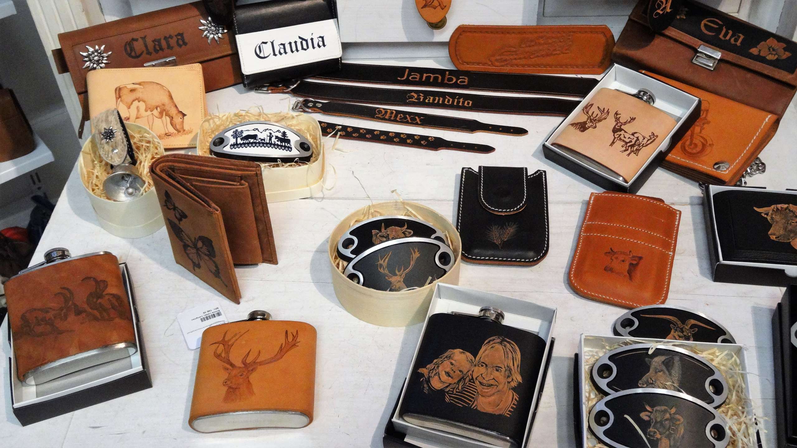 Nebst Gürteln, Taschen, Mappen und Portemonnaies verkauft und produziert Emmeleder auch Lederböden sowie Souvenir- und Werbeartikel für Firmen mitsamt Logos. Doch die Spezialisten bespannen gerne auch alte Ledermöbel. Offenheit und Mut für ungewöhnliche Produkte und Dienstleistungen sind Teil der Firmen-DNA. «Wir sind immer interessiert an neuen Anwendungsfeldern und offen für Anfragen und Partnerschaften», betont Meyer. So arbeitet das Unternehmen seit einiger Zeit mit einer Lederschnitzerin aus der Region zusammen, die kunstvolle Gämsen, Hirsche, Hunde oder auch Personen auf Lederportemonnaies, Gurtschnallen und Flachmänner zaubert. Auf Bestellung verewigt die Künstlerin auch Familienmitglieder und Haustiere. Meyer freut sich über die erfolgreiche Zusammenarbeit: «Diese traditionelle Technik ist bei unseren Kunden so beliebt, dass schon bald eine zweite Schnitzerin für uns arbeiten wird.» Was der Rundgang gezeigt hat, ist auch im Fabrikladen spürbar: Der unbedingte Wille und eine grosse Freude, aus einem vermeintlich traditionellen Werkstoff stets verlässliche, hochwertige – und manchmal auch überraschende – Produkte herzustellen.