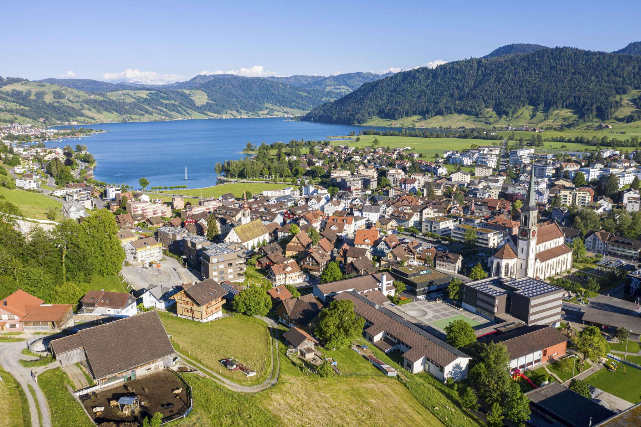 Sanfte, grüne Hügelketten, darin eingebettet der tiefblaue See. Die Region Ägerital-Sattel liegt im Herzen der Zentralschweiz und ist bekannt für ihre nebelfreie Lage.
