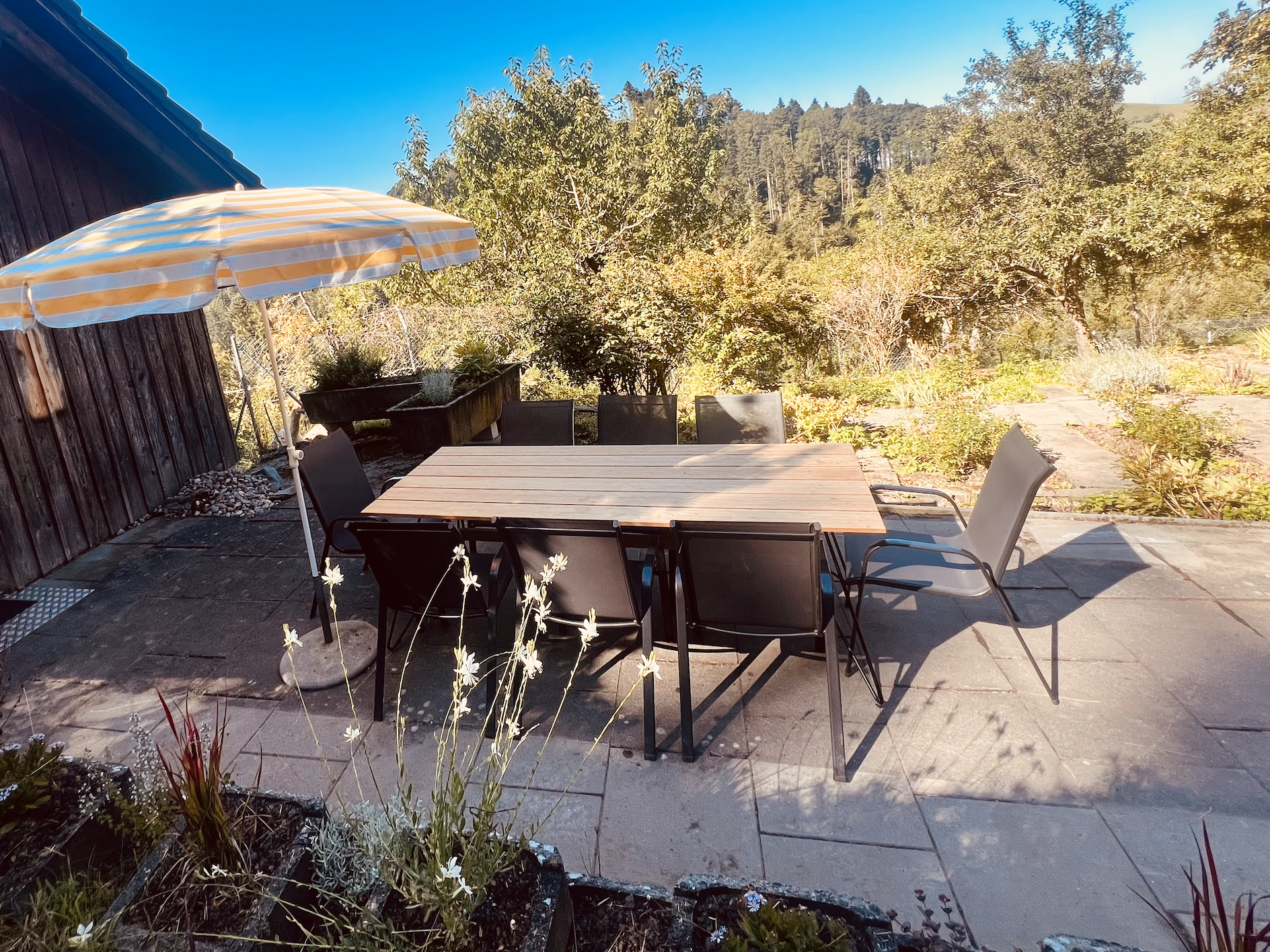 Vom Gartenhaus aus haben Gäste einen schönen Blick auf die Alpaka-Weide und die gemütliche Sofaecke und der Spiel-Schrank lädt zum geselligen Zusammensein ein. In der kälteren Jahreszeit dürfen Gäste den Ofen einfeuern, welcher zusammen mit dem Kochen auf der Kochplatte warme Gemütlichkeit aufkommen lässt. Für warme Füssen sorgen die Alpaka-Filzpantoffel und weitere Produkte wie die Alpaka-Keratinseife zum Händewaschen oder die flauschigen Alpaka-Frottiertücher nach dem Duschen liegen ebenfalls bereit.