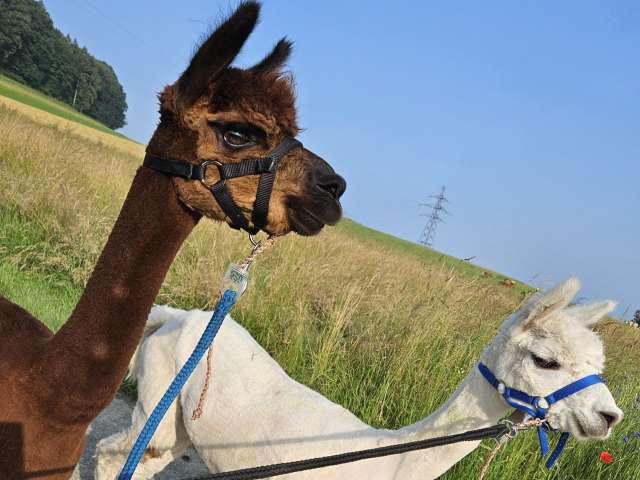 Geniessen Sie beim geführten Alpaka-Spaziergang durch blühende Wiesen und stille Wälder die Natur in ihrer ganzen Vielfalt. Die Alpakas sorgen mit ihrer sanften Art für entspannte Momente und unvergessliche Begegnungen