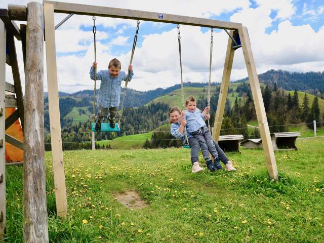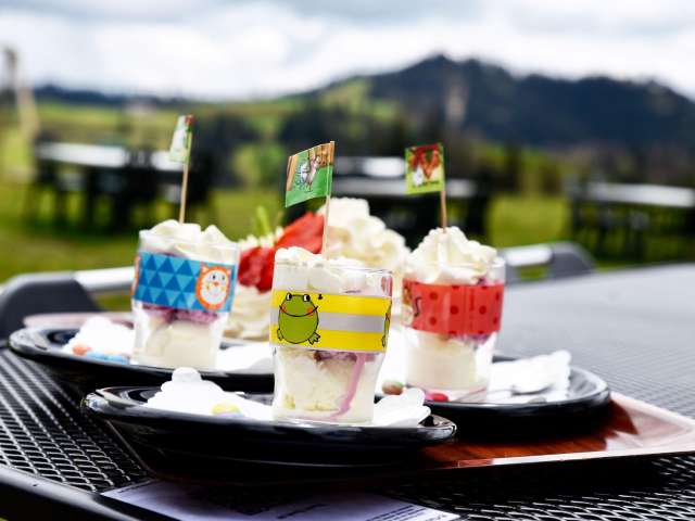 Für die jüngsten Gäste steht ein eigenes Kinderkärtchen zur Verfügung und es sind genügend Hochstühle vorhanden. Für die kleinen Gäste gibt es ausserdem einen grossen Kinderspielplatz.