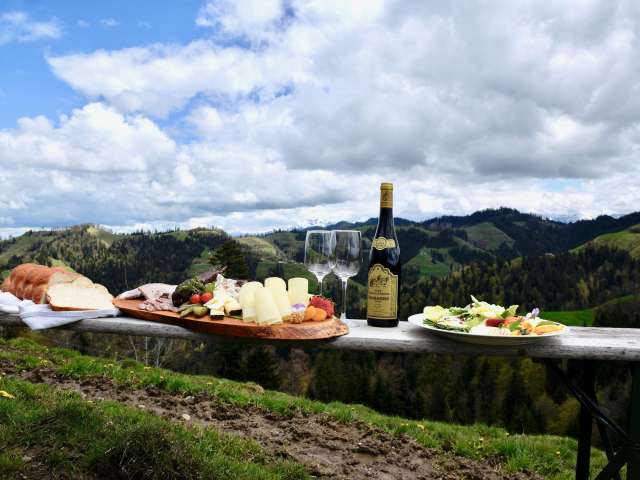 Die Alpwirtschaft bietet eine abwechslungsreiche Tageskarte mit reichhaltigen Salaten, frischem Gemüse, Poulet und Fleisch, verschiedene Spezialitäten aus dem Emmental als Zvieri auf dem Holzbrättli serviert, Käsefondue und Käseschnitten, Rösti mit Bratwurst (Rösti nur an Werktagen) knusprige Pommes frites, wunderbare Glace, Desserts, luftige Meringues liebevoll garniert und feine Hefenussschnecken.