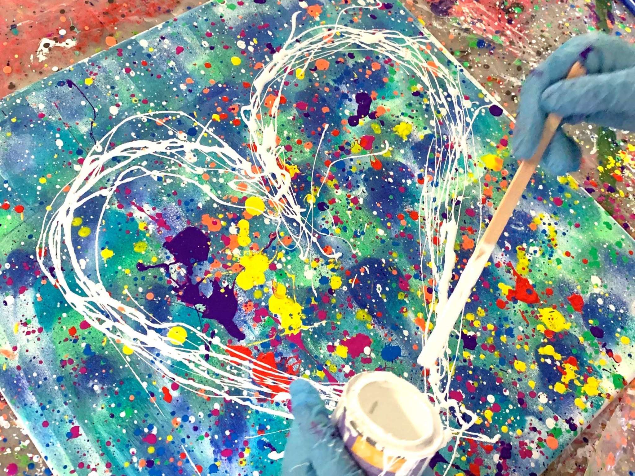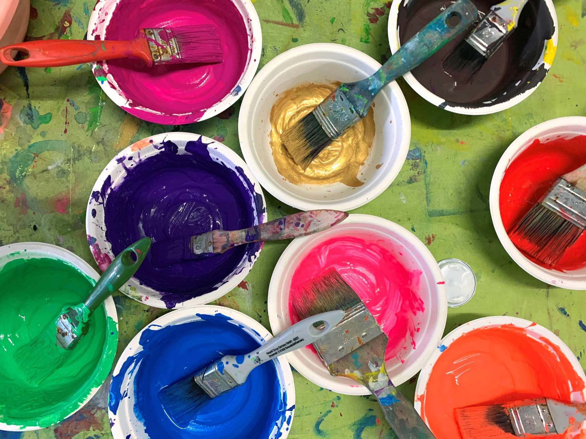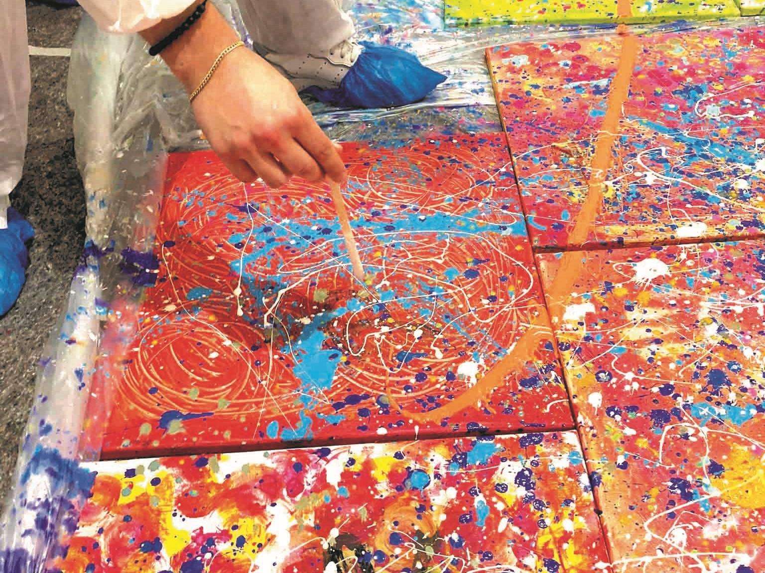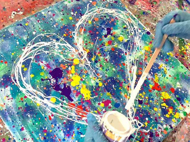 Mit etwas Mut und vertrauen in sich und das Team ist es möglich Action Painting zu machen, Collagen zu gestalten oder auch unterschiedliche Gegenständen gemeinsam zu bemalen und Erinnerungen zu schaffen.