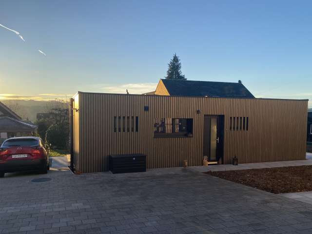 Es steht ein gratis Autoparkplatz direkt vor dem Mini House zur Verfügung. E-Autos und E-Bikes können mit Sonnenstrom aufgeladen werden.