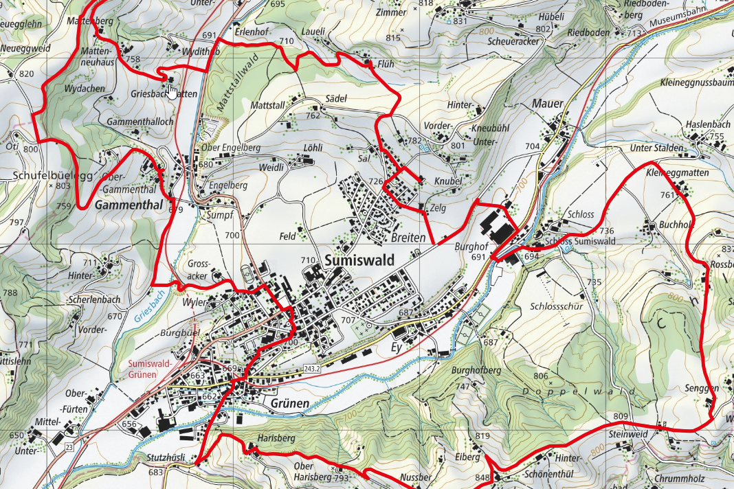 - Wir empfehlen, den Rundweg in Sumiswald zu starten (Parkplatz/ÖV-Anbindung). Sie können den Lehrpfad jedoch auch an einem beliebigen Ort beginnen.