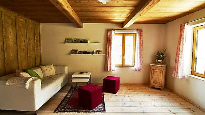 Die frisch renovierte Ferienwohnung befindet sich im unteren Teil des Bauernhauses von 1919.