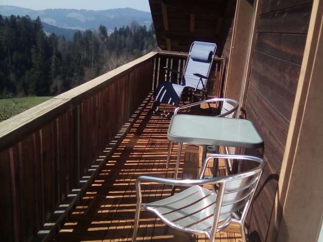 Die gesellige 3,5 Zimmerwohnung ist ausgestattet mit Küche, Bad mit Dusche, Wohnstube mit ausziehbarem Bettsofa, Schlafzimmer mit Doppelbett, Schlafzimmer mit 3 Einzelbetten und einem Balkon mit schöner Aussicht in die Natur. Wer gerne mit dem Pferd in den Urlaub möchte, kann dazu auch eine Box oder Weide mieten. Ansonsten ist das schöne Dorf Langnau mit Fahrzeug schnell erreichbar.