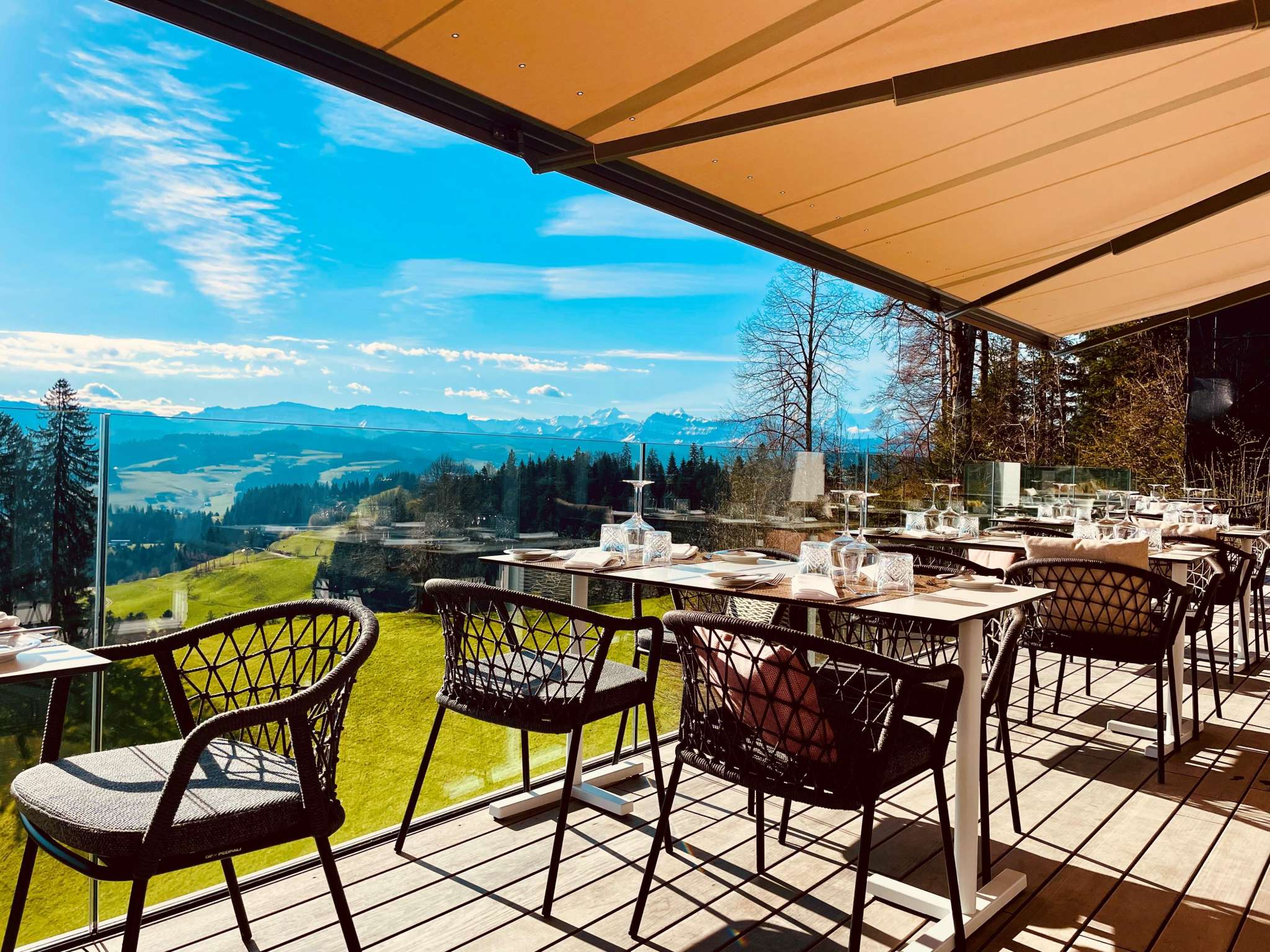Geniessen Sie auf fast 1'000 M.ü.M die Aussicht über das Emmental und die Kulinarik in vollen Zügen.
