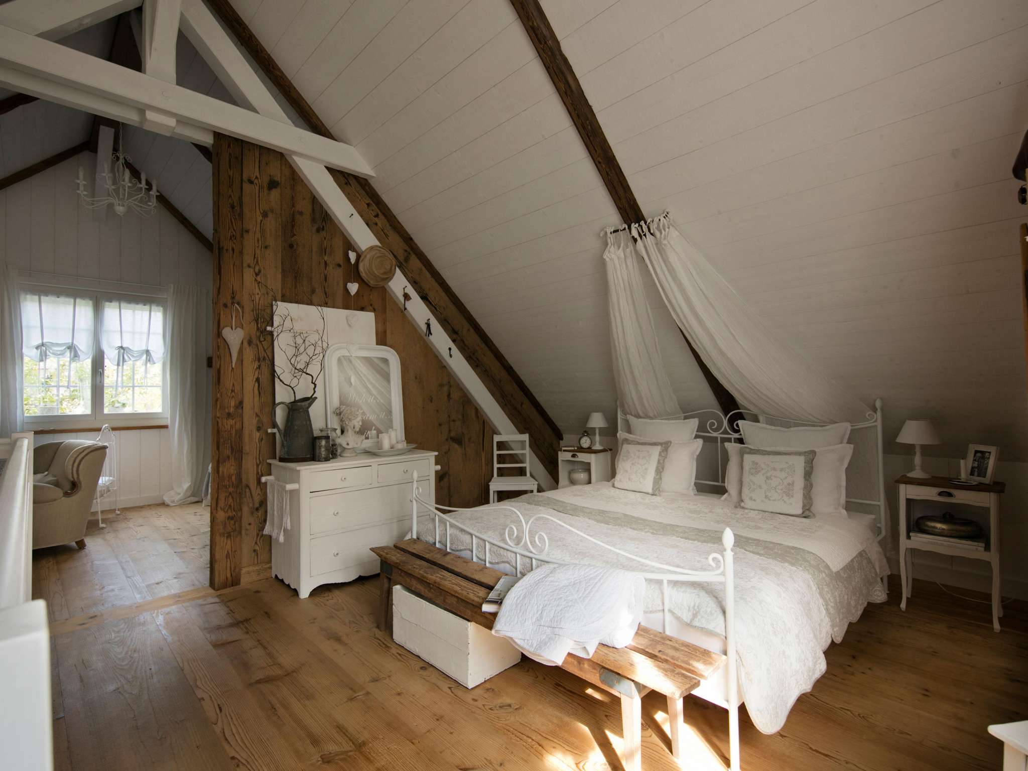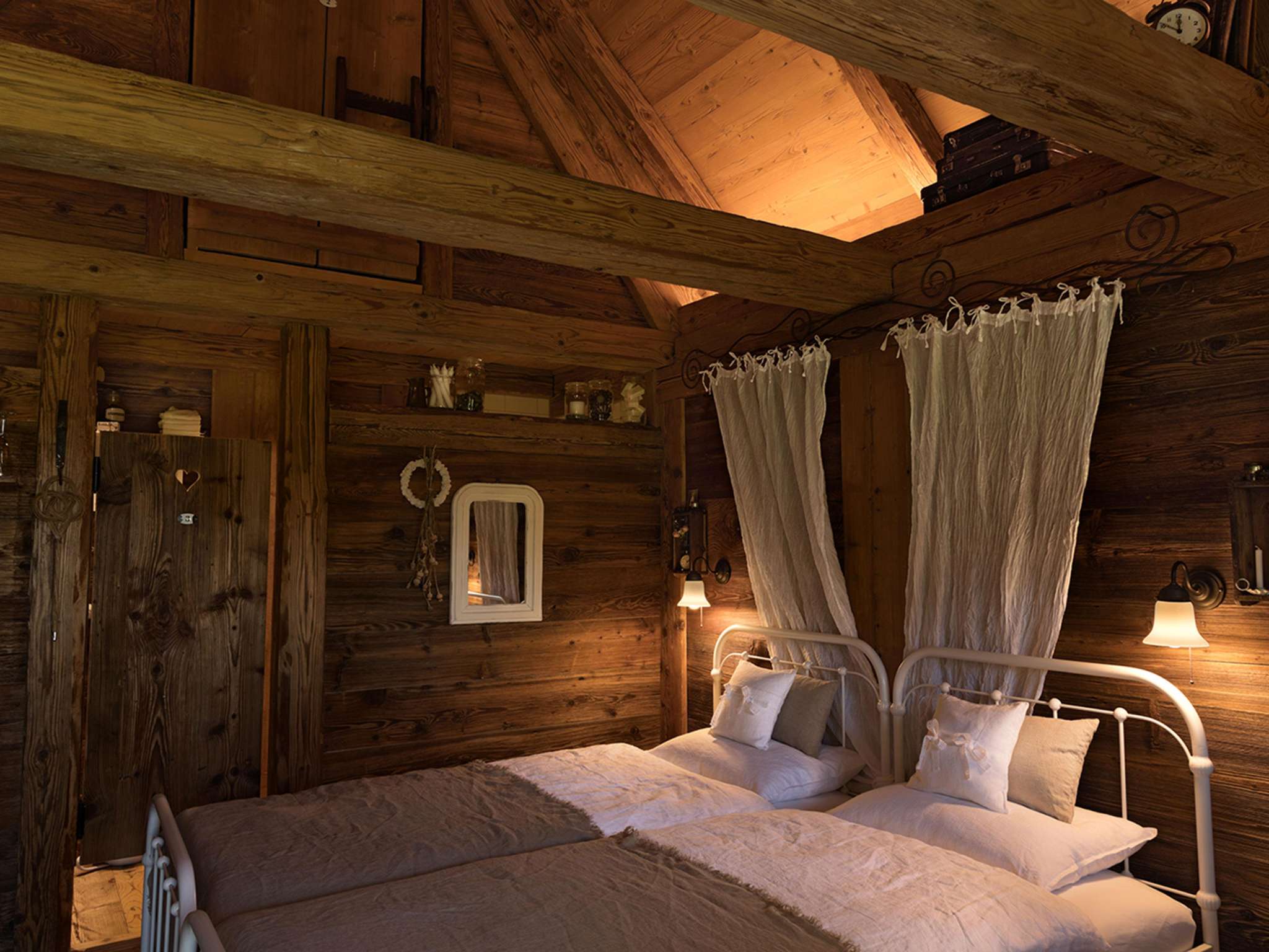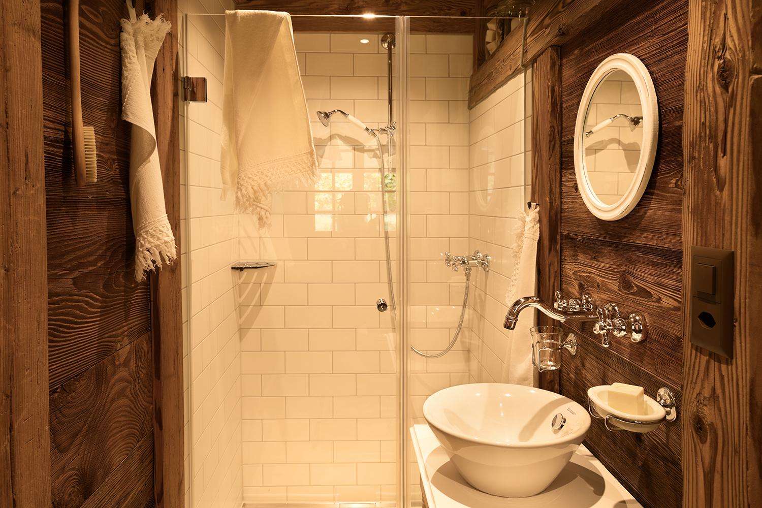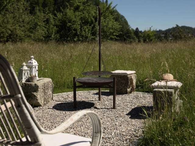 Das Angebot schliesst zwei freistehende Gästehäuser ein, welche sich in Sichtweite voneinander inmitten der Ökowiese in der Hofstatt befinden. Die alten Obstbäume ringsum spenden Schatten und strahlen Ruhe und Behaglichkeit aus. Liegestühle und eine Grillstelle laden zum Verweilen und Geniessen ein. Das «Weideschürli» diente früher als Unterschlupf für Rinder und Pferde. Es bietet mit seinen 15 m2 in restaurierter, optimal ausgenutzter Wohnform Platz für ein oder zwei Personen. Es wird für Kurzaufenthalte empfohlen. Das «Ofehüsli», zu früheren Zeiten als Brotbackhaus genutzt, ist ein altes Sandsteingebäude mit zwei Etagen, das für zwei bis vier Personen schmuck eingerichtet ist und sich für längere Aufenthalte eignet. Beide Häuser sind mit WC/Bad/Dusche ausgestattet. Das Frühstück wird morgens direkt ins Gästehaus gebracht und kann dort oder bei schönem Wetter draussen vor dem Häuschen genossen werden. Die Gäste werden dabei mit frisch gebackenem Brot, Zopf und anderen hofeigenen und regionalen Produkten verwöhnt. Die Gästehäuser stehen von März bis November zur Verfügung. Belegungskalender und Buchungsformular finden Sie auf der Website. Die Inneneinrichtung der Häuser ist mit viel Sorgfalt, antiken Gegenständen und auserlesenen Dekoartikeln ausgestattet. Die Gästehäuser sind ausschliesslich für erwachsene Gäste geeignet und daher nicht für Aufenthalte mit Kindern ausgelegt.