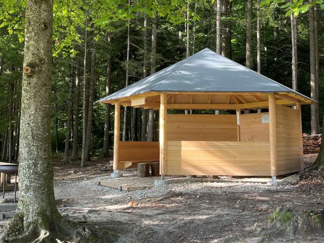 Auf dem Binzberg zeigt sich Burgdorf von seiner schönsten Seite. Die Wiesen scheinen hier noch etwas grüner und die Getreidefelder noch etwas goldener zu sein als anderswo. In den Wäldern ist es auch im Hochsommer angenehm kühl. Und die Brätlistelle ist ein wahres Schmuckstück: Im Sommer 2022 haben die sechs Burgdorfer Service-Clubs gemeinsam einen Holzpavillon mit Tisch und diversen Sitzmöglichkeiten eingerichtet. Vor dem Pavillon stehen der Grill und ein weiterer Tisch mit Bänken. Ebenfalls erwähnenswert: In der Nähe hat es mehrere «wilde» Brätliplätze, die wunderbare Aussichten auf Burgdorf, Heimiswil und die Emmentaler Hügellandschaft bieten.