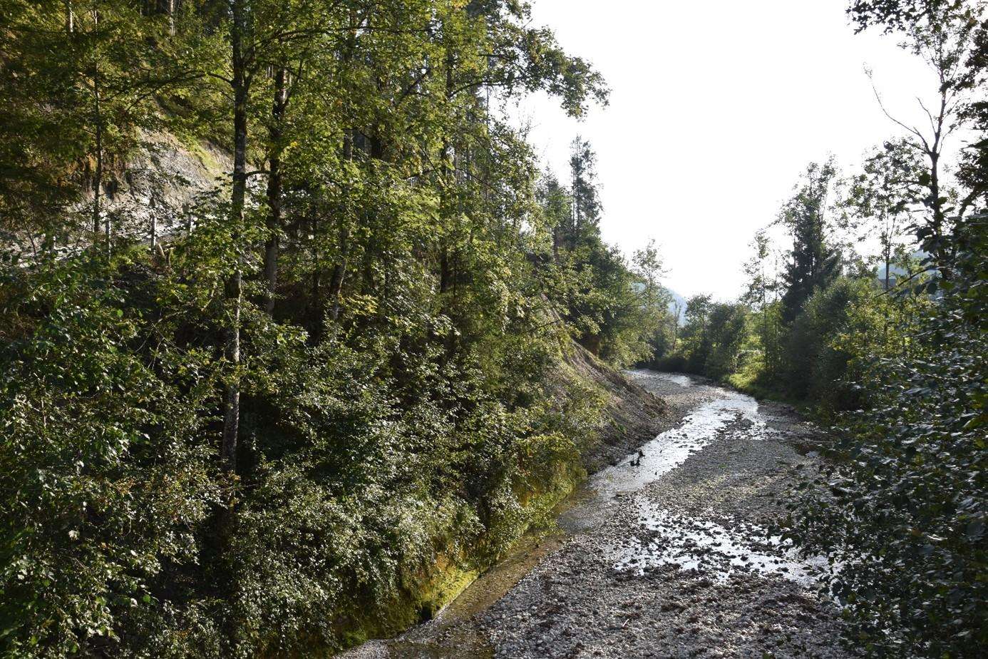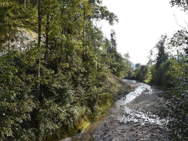 Schöne Brätlistelle am Bachufer der Trueb mit Feuerstelle, massivem Tisch und Bänken.