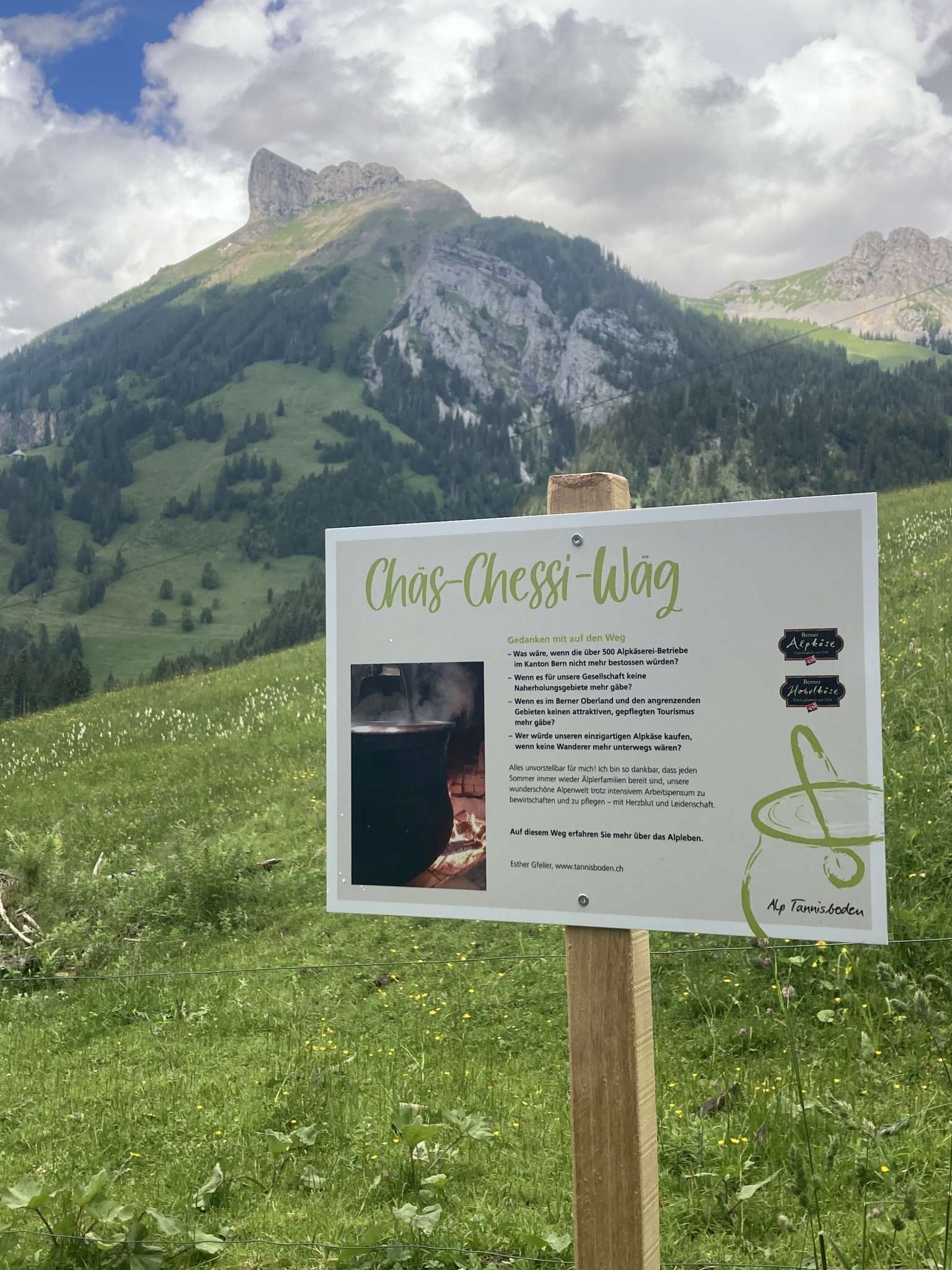 Der Start des Weges ist bei der «Mürebach-Brücke». Die rund 16 Tafeln berichten in kurzen und informativen Texten über die Sehnsucht nach der Alp, die Vorbereitungen im Frühling und den Herstellungsprozess des Alpkäses. Auch ein unterhaltsames «Älpler-ABC» wartet auf die Wanderer. Dazwischen gibt es ganz persönliche Tafeln, mit spannende Geschichten rund um das Älplerleben der Älpler von der Alp Tannisboden. Unterwegs kann man sich am Alp-Kiosk auf der Alp Tannisboden verpflegen um gestärkt weitere interessante und zum Schmunzeln bringende Geschichten zu erfahren.