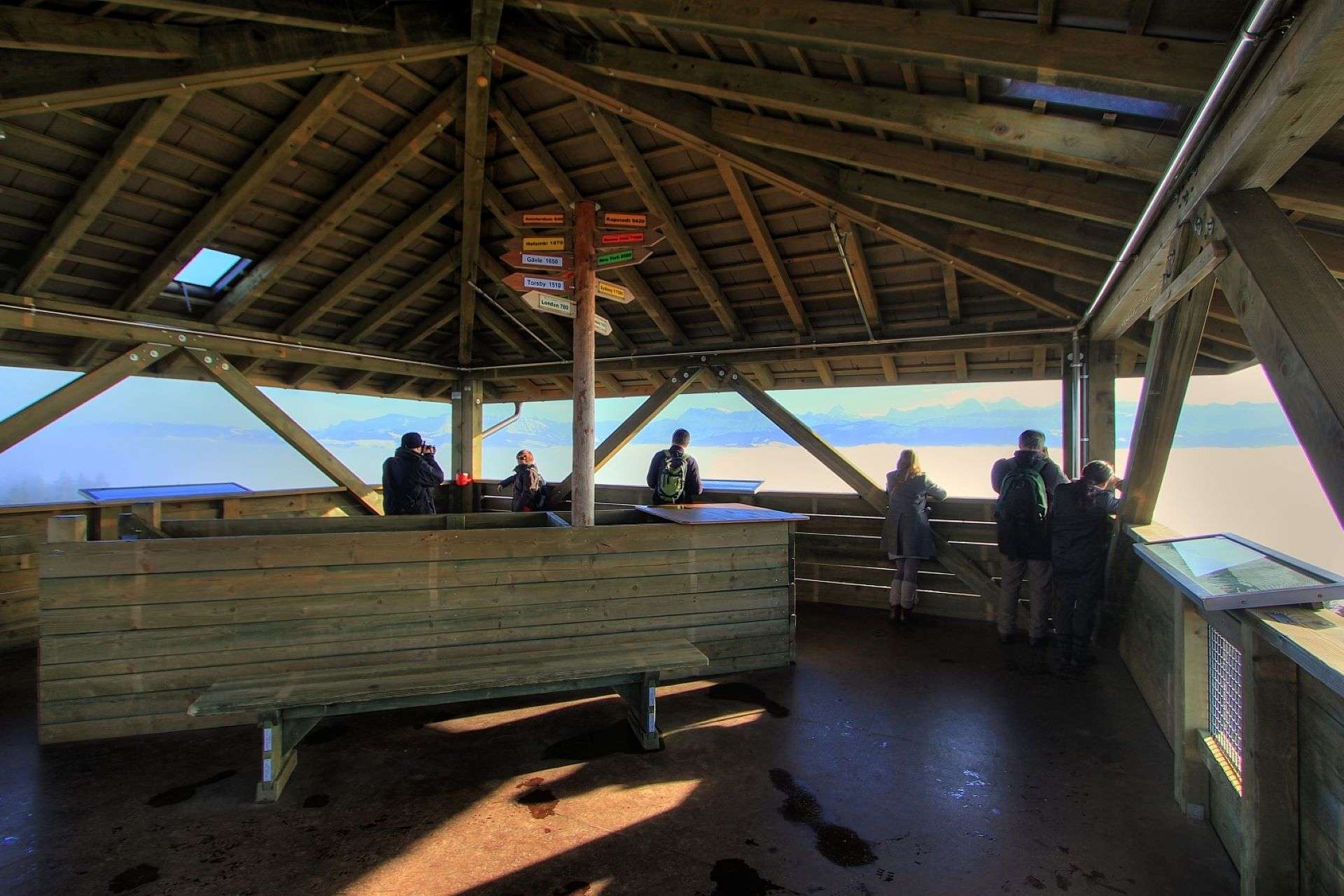 Der Aussichtsturm mit 37 Meter Höhe wird über 195 Treppenstufen erreicht. Von da aus geniesst man einen wunderschönen Blick über die Wälder und Emmentaler Hügellandschaft bis hin zu der Alpenkette. Die Idee, einen Aussichtsturm zu bauen, hatten Einheimische zum 850-jährigen Gründungsjubiläum der Gemeinde Röthenbach im Emmental. Der hölzerne Aussichtsturm, der aus den Beiträgen des Kantons und der Lokalen errichtet wurde, wurde 1998 eingeweiht. Leider wurde er in weniger als drei Jahren niedergebrannt. Doch einige Tage nach diesem traurigen Ereignis wurde beschlossen, einen neuen Turm zu bauen. Dieser neue Turm wurde 2002 eröffnet.