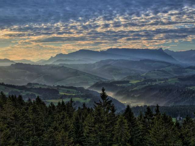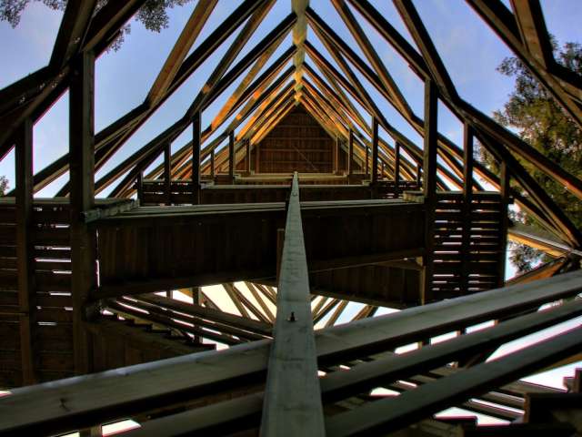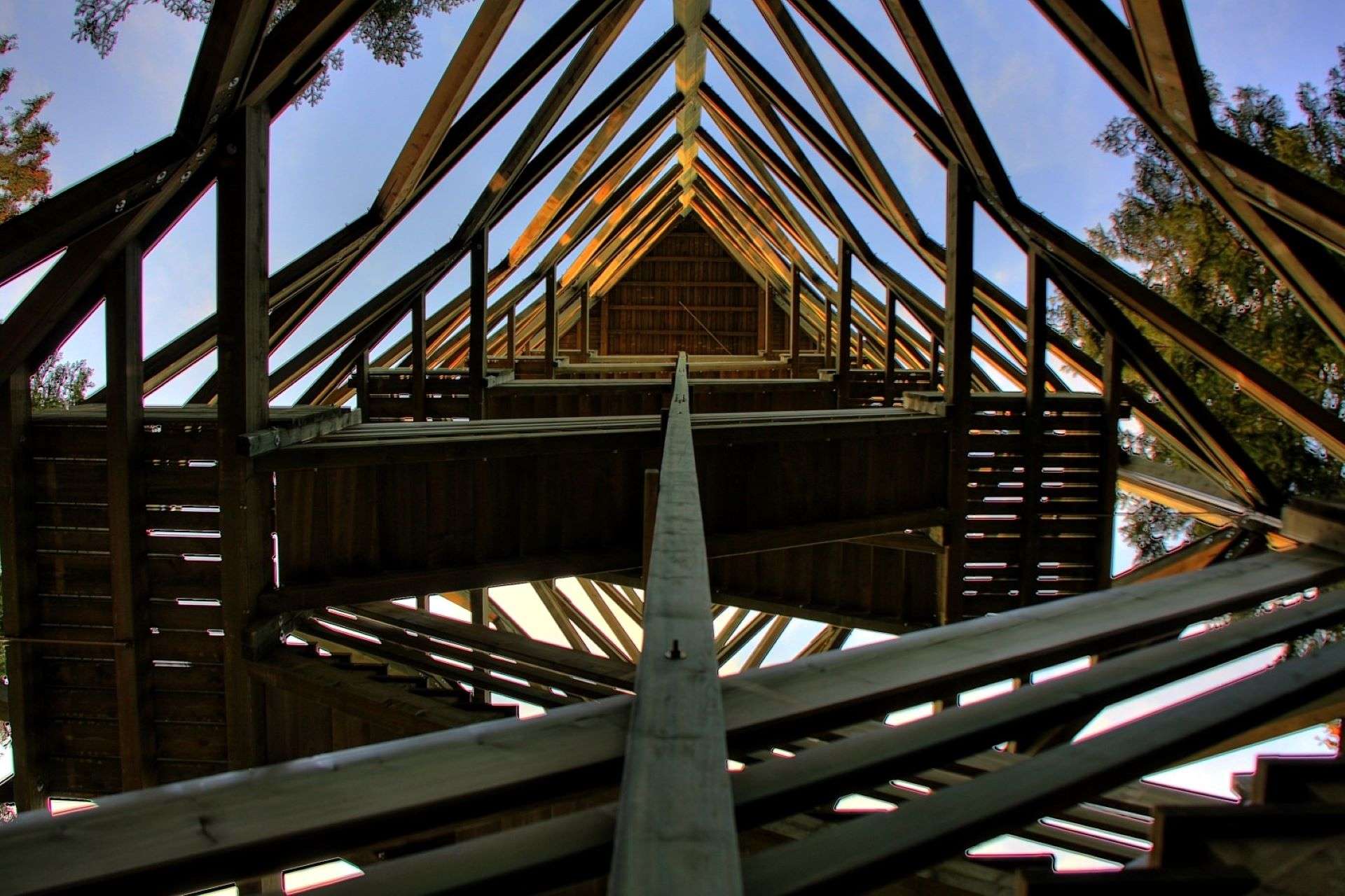 Der 42 Meter hohe Aussichtsturm Chuderhüsi ist aus Weisstannen-Holz gebaut und gehört zu den höchsten Holztürmen der Schweiz.