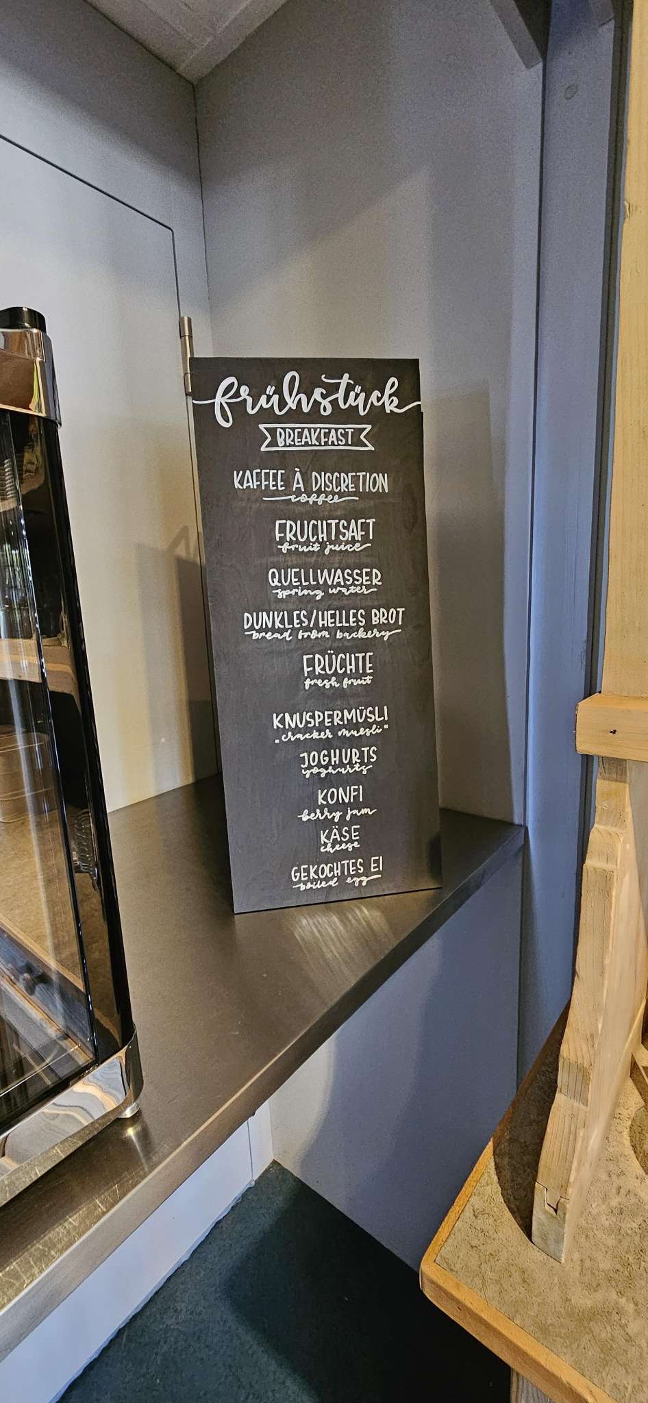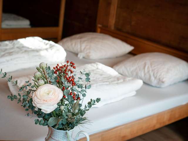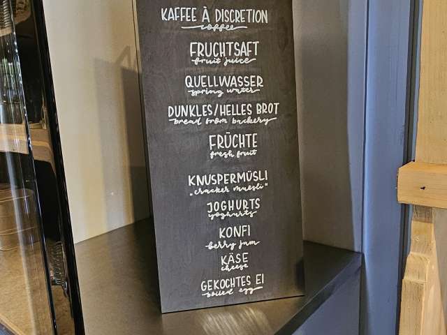Auf Wunsch steht ein Frühstücksbuffet zur Verfügung. Auf Anfrage werden Apéros im schönen Garten vor dem Stöckli angeboten.
