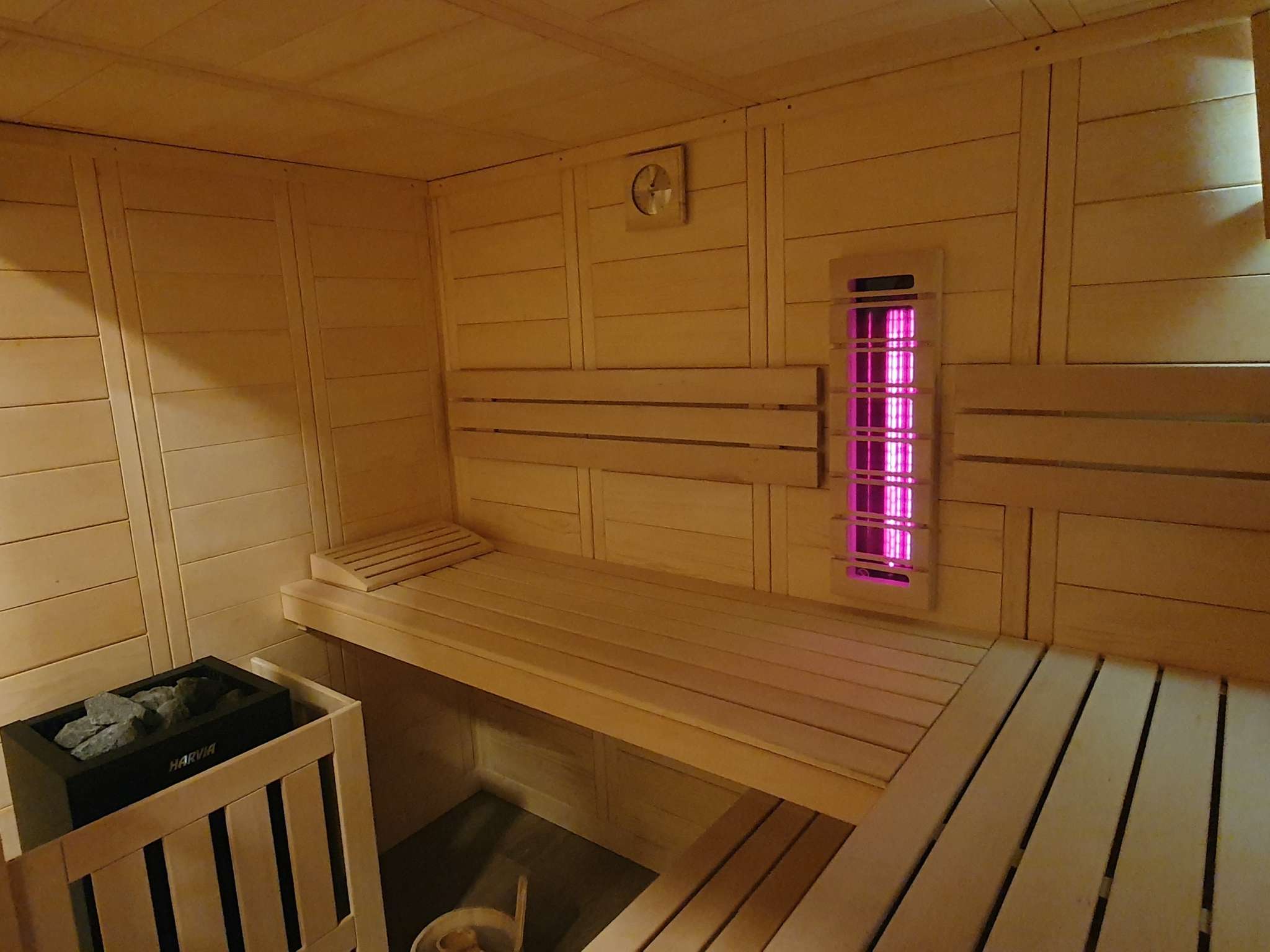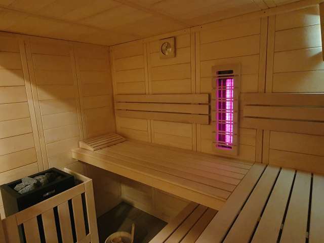 Zusätzlich dient der Wellnessbereich, bestehend aus Sauna und Whirlpool, zur bestmöglichen Erholung.