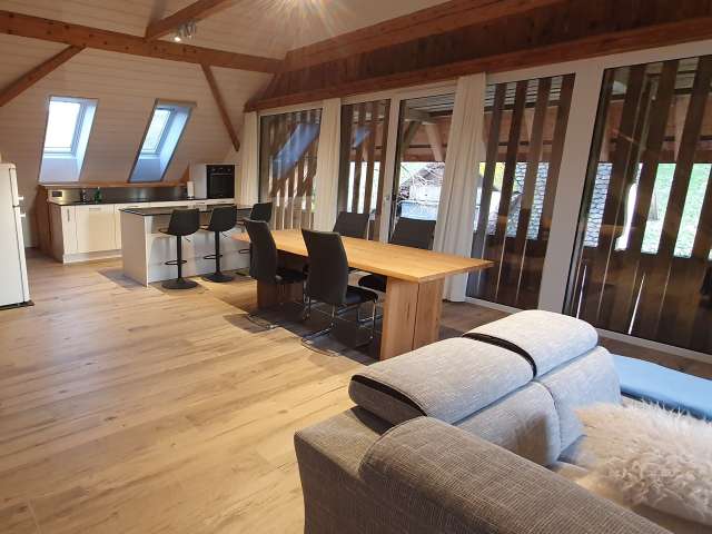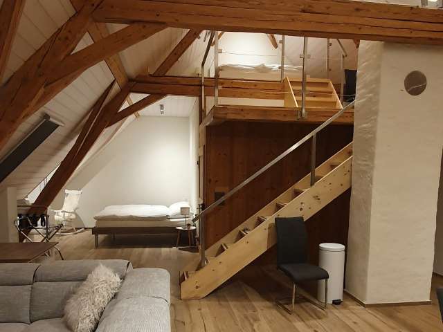 Im renovierten Bauernhaus lädt eine Loftwohnung zum Verweilen in der Natur ein. In der nähe befinden sich Kühe und ein tolles Wandergebiet. Zudem sind Gäste dank der zentralen Lage in der Schweiz mit dem Auto innerhalb von 1.5h an diversen Sehenswürdigkeiten und Ausflugszielen.