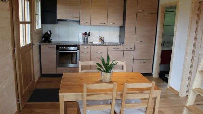Das Haus bietet bis zu 4 Personen Platz. Es verfügt über ein Schlafzimmer mit einem Doppelbett und einer Galerie mit weiteren 2 Schlafplätzen. Zusätzlich kann auf Anfrage ein Babyreisebett, sowie ein Hochstuhl zur Verfügung gestellt werden. Des weiteren gibt es eine gut ausgestattete Küche mit Herd, Geschirrspüler, Kühlschrank und einer Kaffeemaschine, sowie allen notwendigen Küchenutensilien. Das Bad ist mit einer Dusche ausgestattet. Ein Fernseher und Internetanschluss stehen kostenlos zur Verfügung. Ein Parkplatz zur Benutzung ist vorhanden. Vom kleinen Balkon aus, kann man die Landschaft geniessen. Im Haus darf nicht geraucht werden.