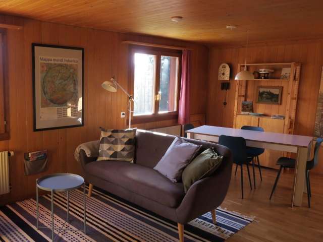 Die 3-Zimmer Ferienwohnung im Stöckli bietet Platz für 1-4 Personen, ist vollständig ausgestattet und zentral beheizt. Sie verfügt zudem über einen grossen Vorraum und einen Sitzplatz mit Sonnenschutz. WLAN vorhanden.