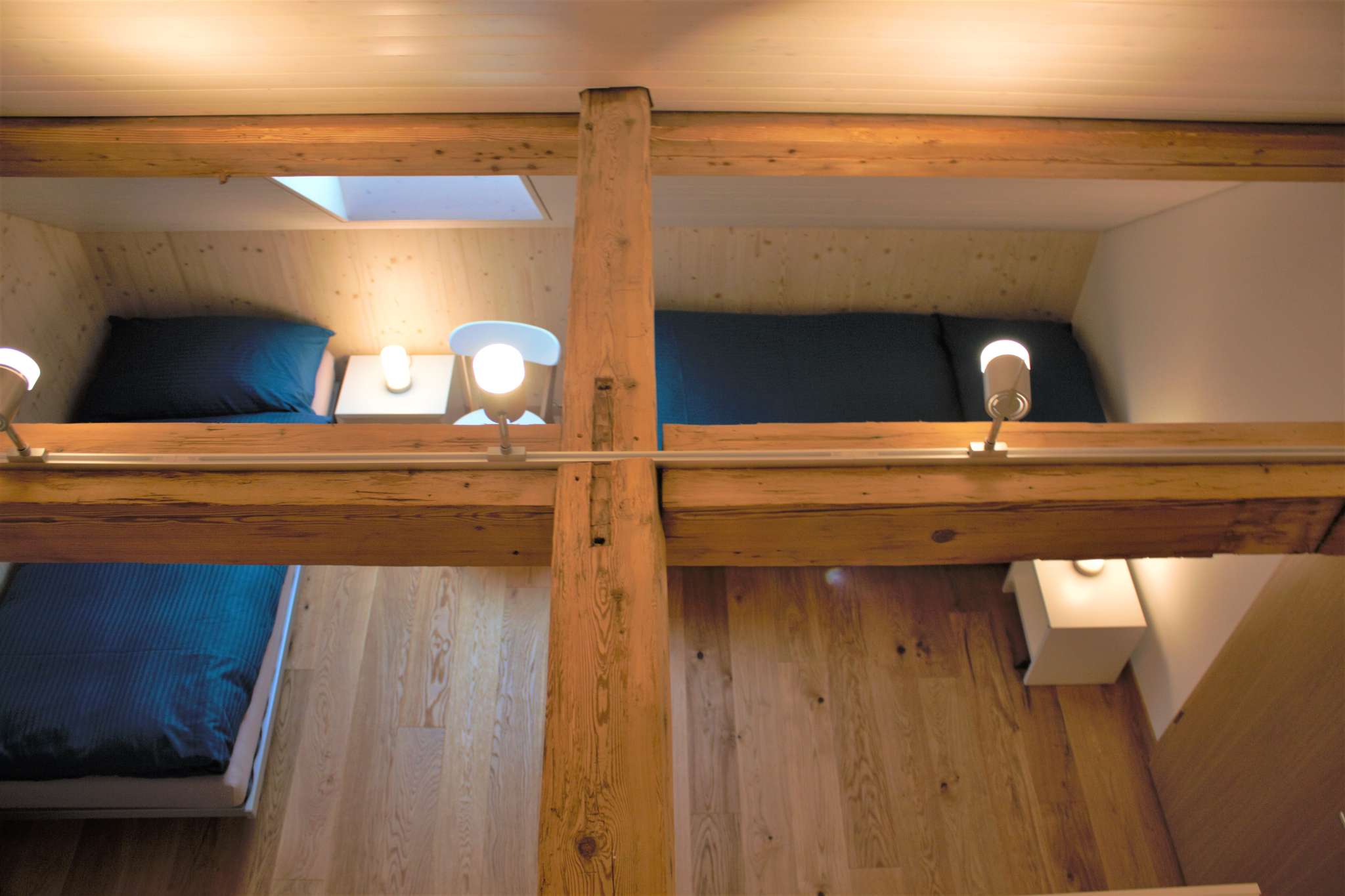- Schlafzimmer mit zwei Betten und Galerie mit drei zusätzlichen Matratzen