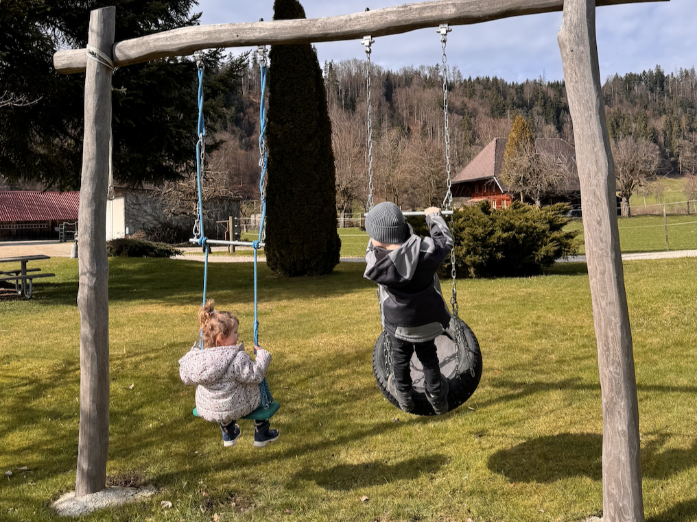 Inmitten des hügeligen Emmentals, wo auf jedem Hügel ein Baum wächst, kann man nach Herzenslust die Seele baumeln lassen. Durch die Möglichkeit das eigene Pferd mitzubringen und auf dem Hof mitzuhelfen, ist ausserdem für Abwechslung gesorgt.