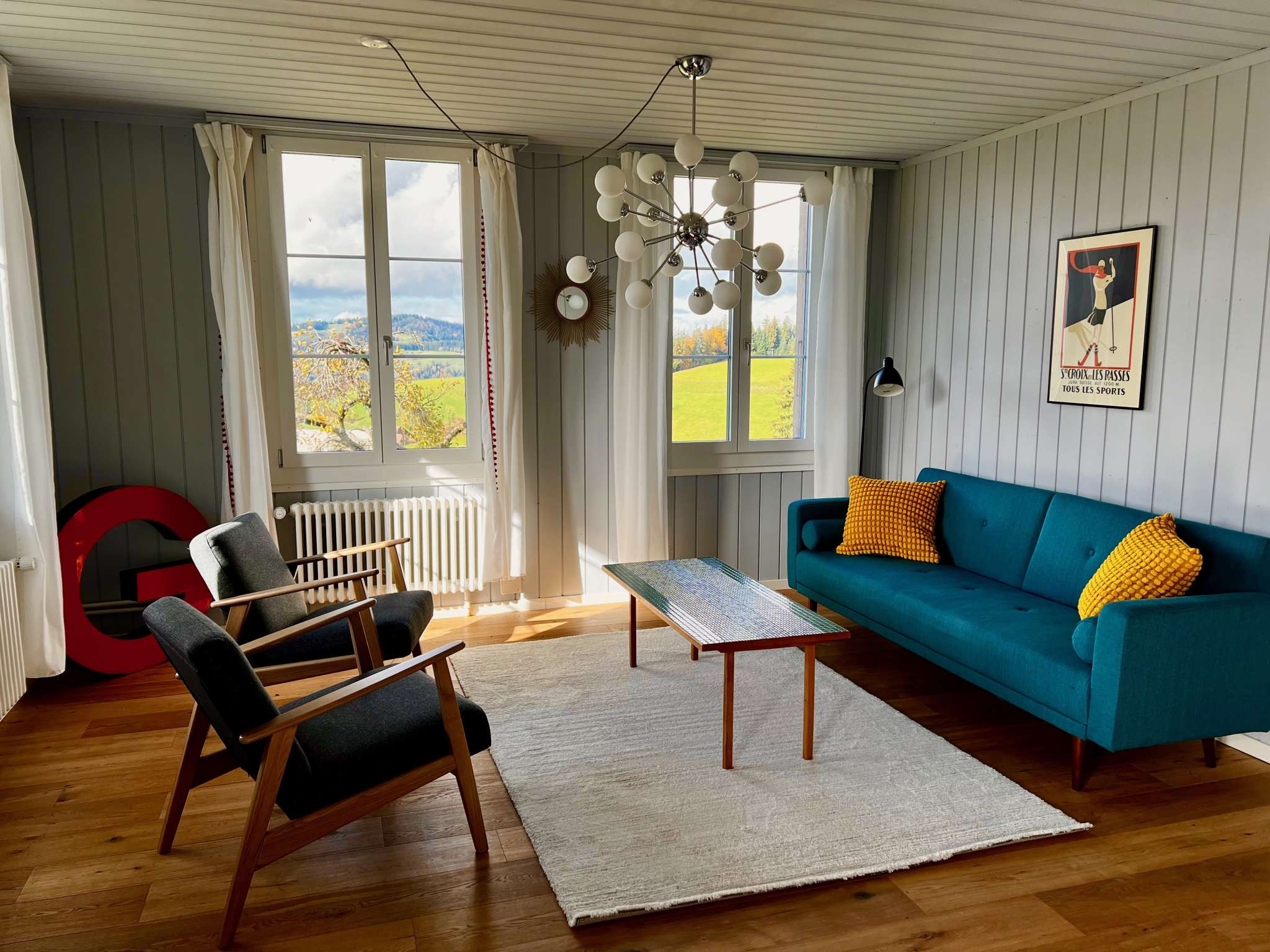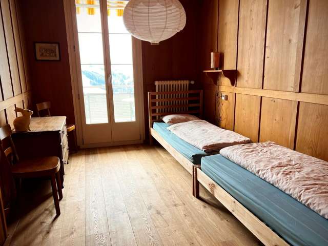 Die Ferienwohnung ist für 1 – 4 Personen geeignet und befindet sich im 1. Stock des ehemaligen Schulhauses. Die Wohnung verfügt über einen grosszügigen Grundriss mit Wohnzimmer, Balkon, gut eingerichteter Küche, zwei Schlafzimmer, eines mit Doppelbett und eines mit zwei Einzelbetten, sowie einem Badezimmer. Haustiere sind nicht erlaubt. Details und Buchungsmöglichkeiten finden Sie auf der Website.