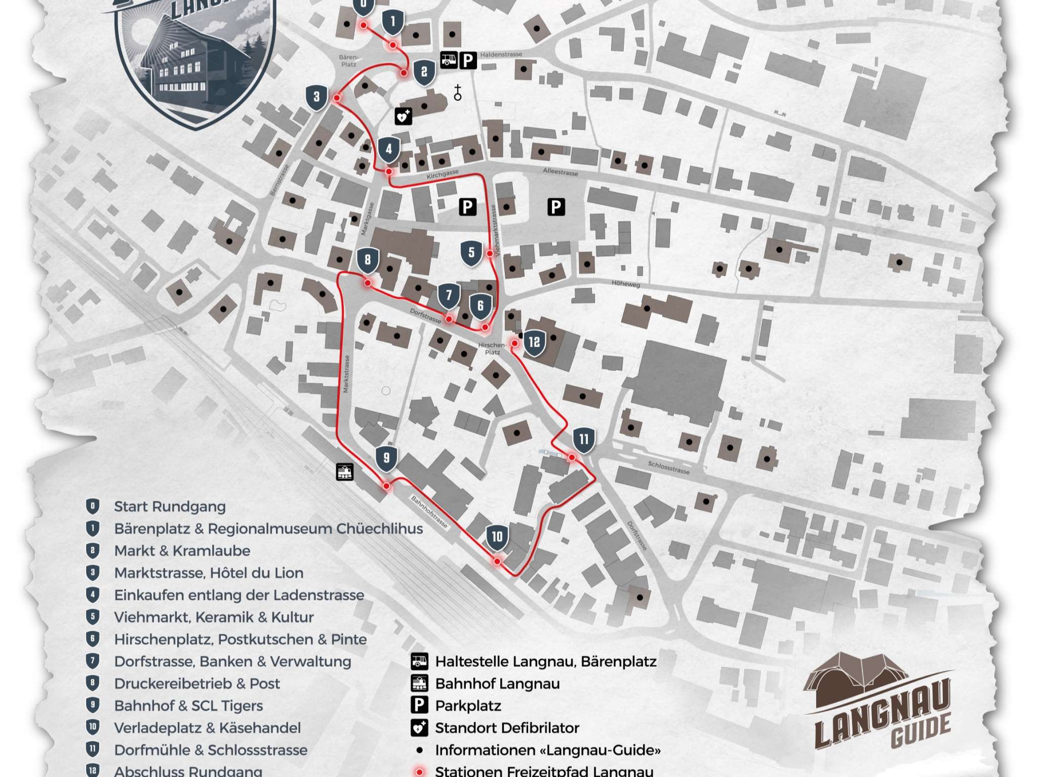 Vier Dinge haben das Dorf Langnau in der Vergangenheit berühmt gemacht. Der Käse mit den grossen Löchern, das Leinentuch, die Keramik und der grosse Jahrmarkt. Inmitten der lieblichen Hügel der Landschaft, im Tal der Ilfis gelegen, entwickelte sich Langnau ab dem 17. Jahrhundert zum heutigen Dienstleistungszentrum einer ganzen Region. Entdecken Sie auf dem Rundgang die historische Geschichte wie sie in keinem Geschichtsbuch zu lesen ist. Wer Langnau besucht und mit offenen Augen durch das Dorf spaziert, ist überrascht von einer unglaublichen Fülle an Geschichten, schönen Gebäuden, kulturellen Angeboten und kulinarischen Gemütlichkeiten.