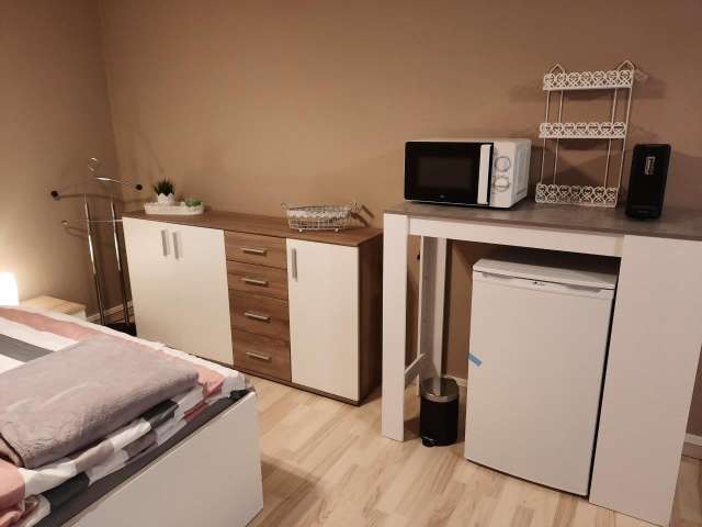 - Zum Gästezimmer gehört ein kleiner Aussensitzplatz und eigener Eingang. Kostenloser Parkplatz.