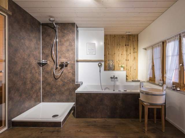 Die Velos können im abschliessbaren Veloschöpfli versorgt werden. Anschliessend geniessen Sie eine wohltuende Dusche in einem