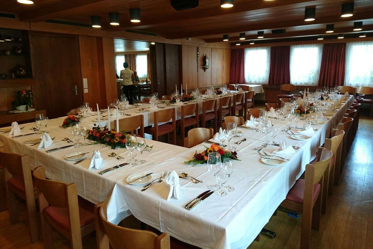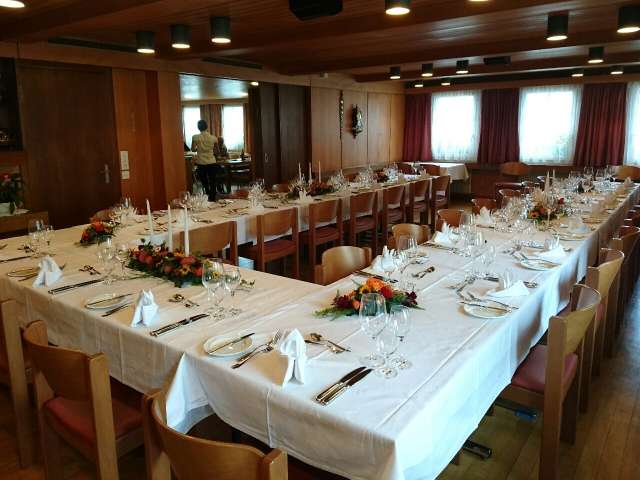 Der Saal für 200 Personen, das Speisesääli für 50 Personen, das Cheminéezimmer für 30 Personen und die heimelige Gaststube, eignen sich sehr gut für Hochzeits-, Geschäfts- und Familienanlässe oder zum gemütlichen Verweilen im Freundeskreis. Der gepflegten Gewölbekeller passt ideal für ein Apéritif.