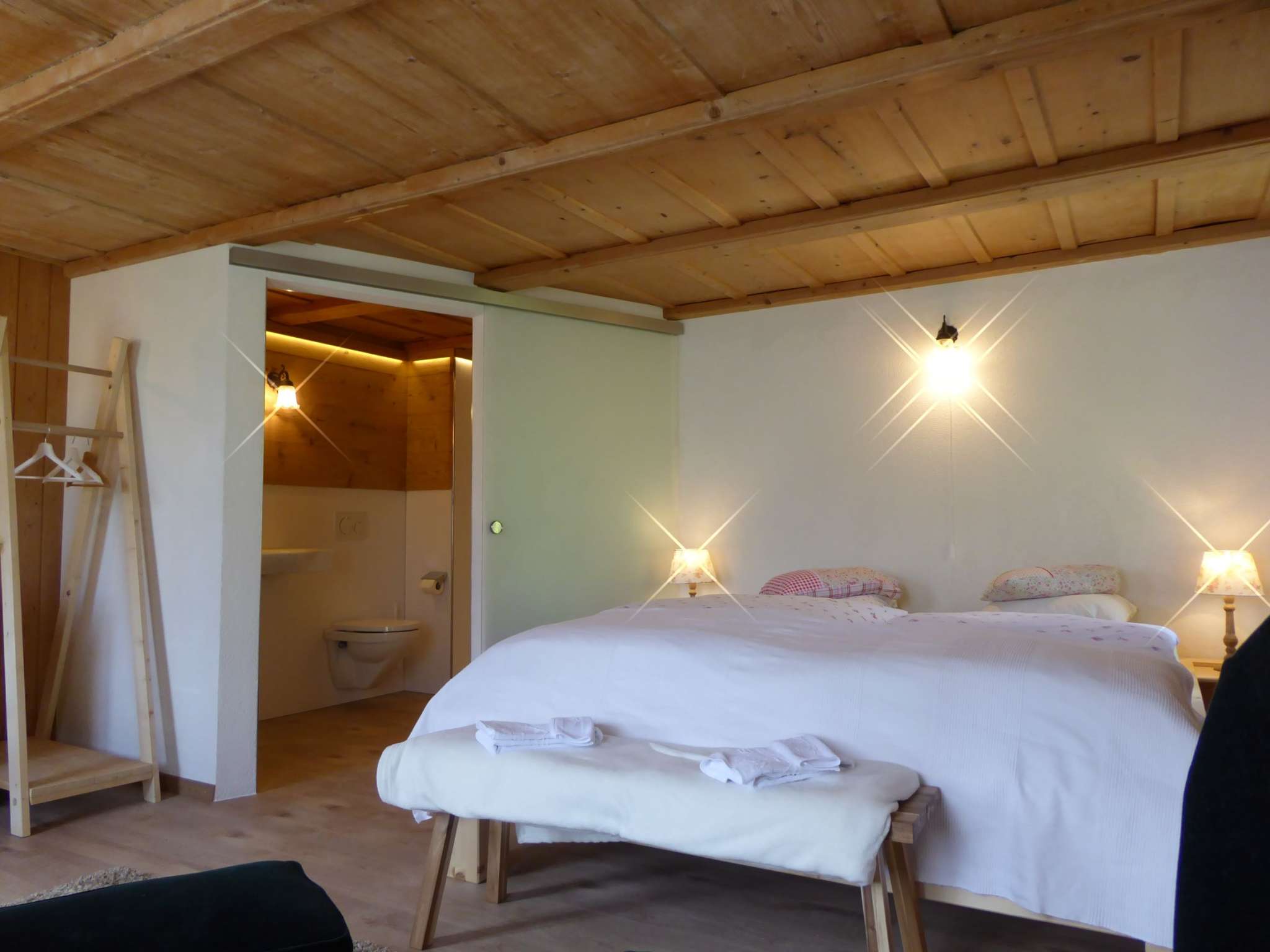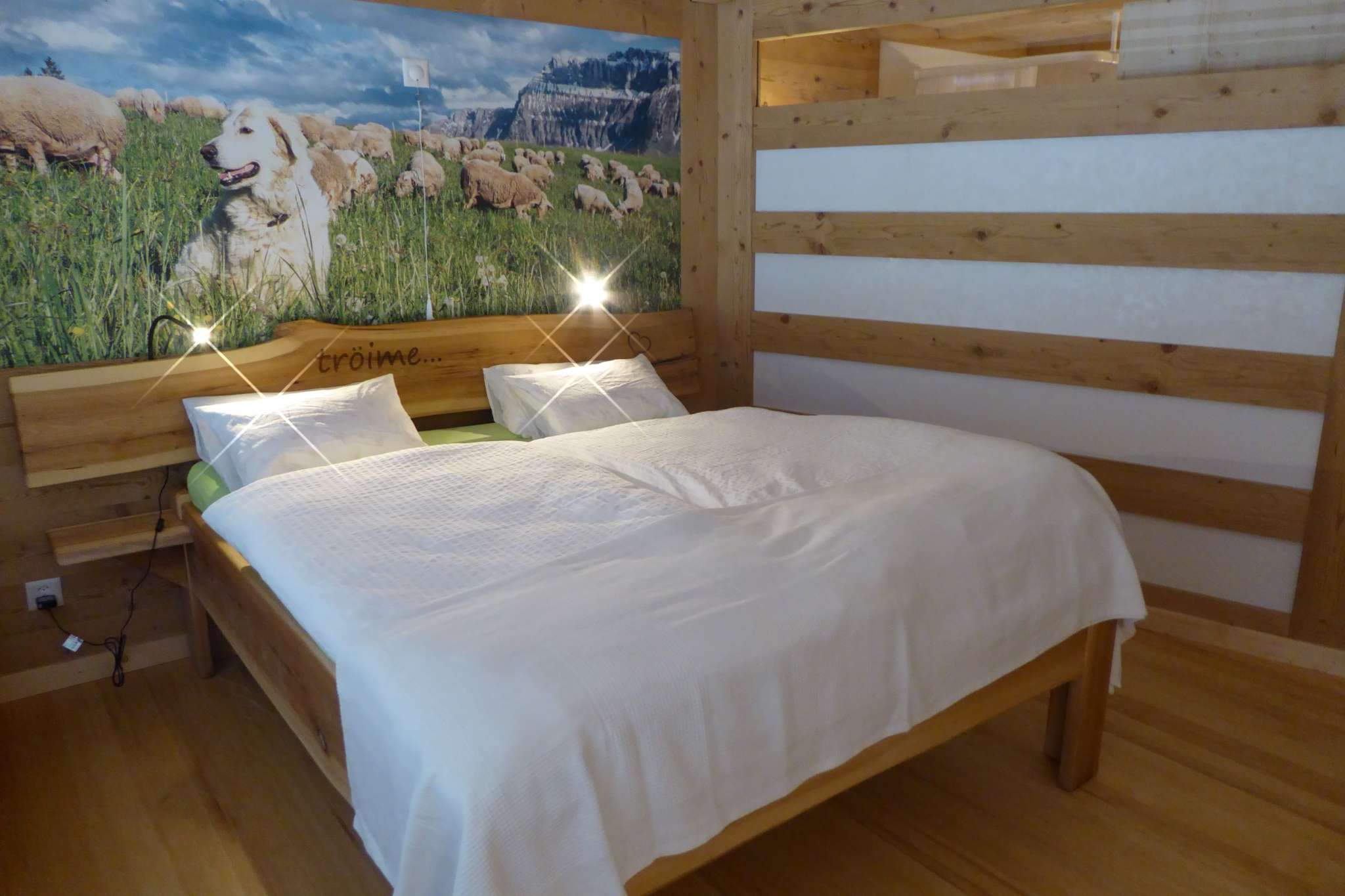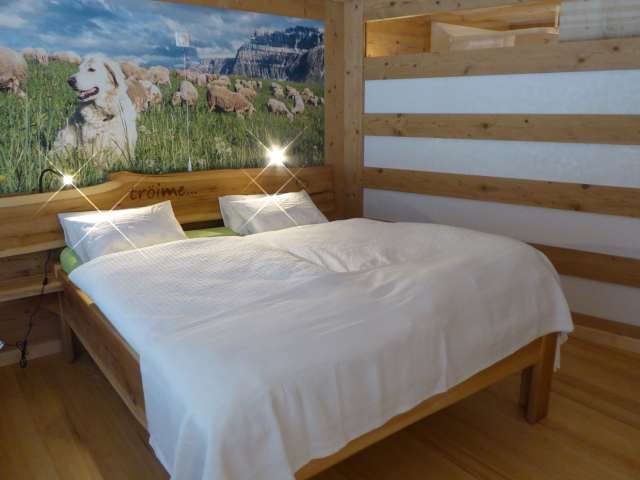 • 6 Doppelzimmer mit eigenem Bad, ausgestattet mit Mohnholz-Betten