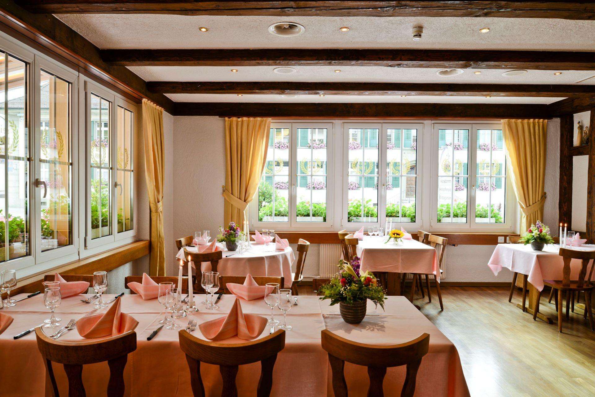 Essen und trinken im Restaurant Pizzeria des Gasthofs zum Wilden Mann in Aarwangen. Auf der Speisekarte stehen neben traditionellen und gutbürgerlichen Gerichten, Pizzas aus dem Holzofen sowie Pasta– und Risottogerichte. Eine gemütliche Gaststube bietet zusammen mit dem optisch durch den Eingangsbereich etwas abgetrennten Säli Platz für rund 80 Personen.