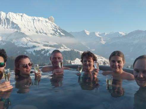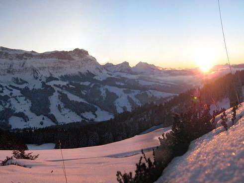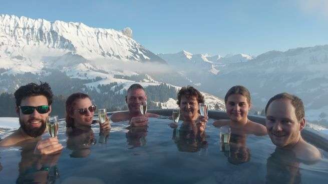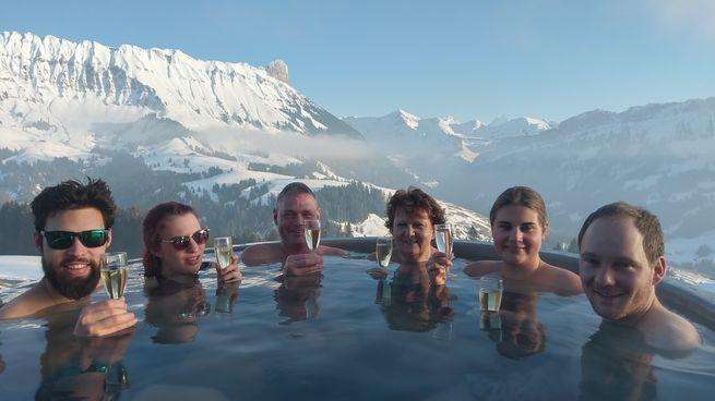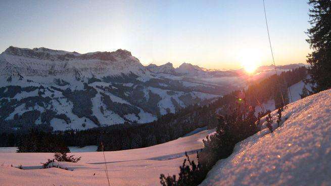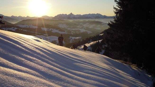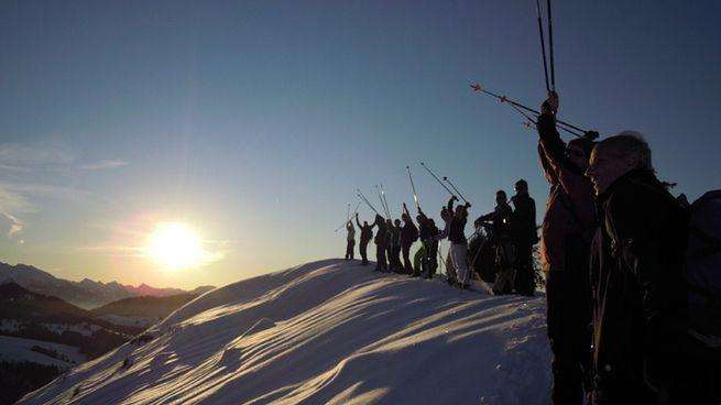Im Angebot inbegriffen sind die geführte Schneeschuhtour mit einem erfahren Tourenführer, die Miete für Schneeschuhe und Stöcke, Bad im Hot Pot und ein traditionelles Fondue im Bergbeizli.