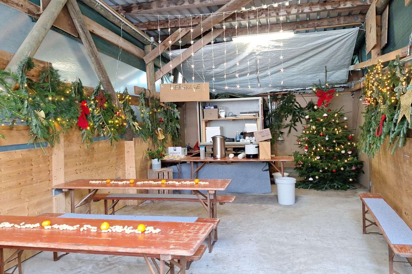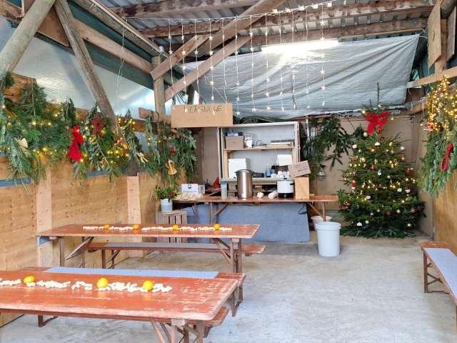 Nach dem Besuch der Baumplantage lädt die Glühweinstube zum Verweilen ein. An den Wochenenden werden zu jedem Baum ein Glühwein oder Punsch angeboten.