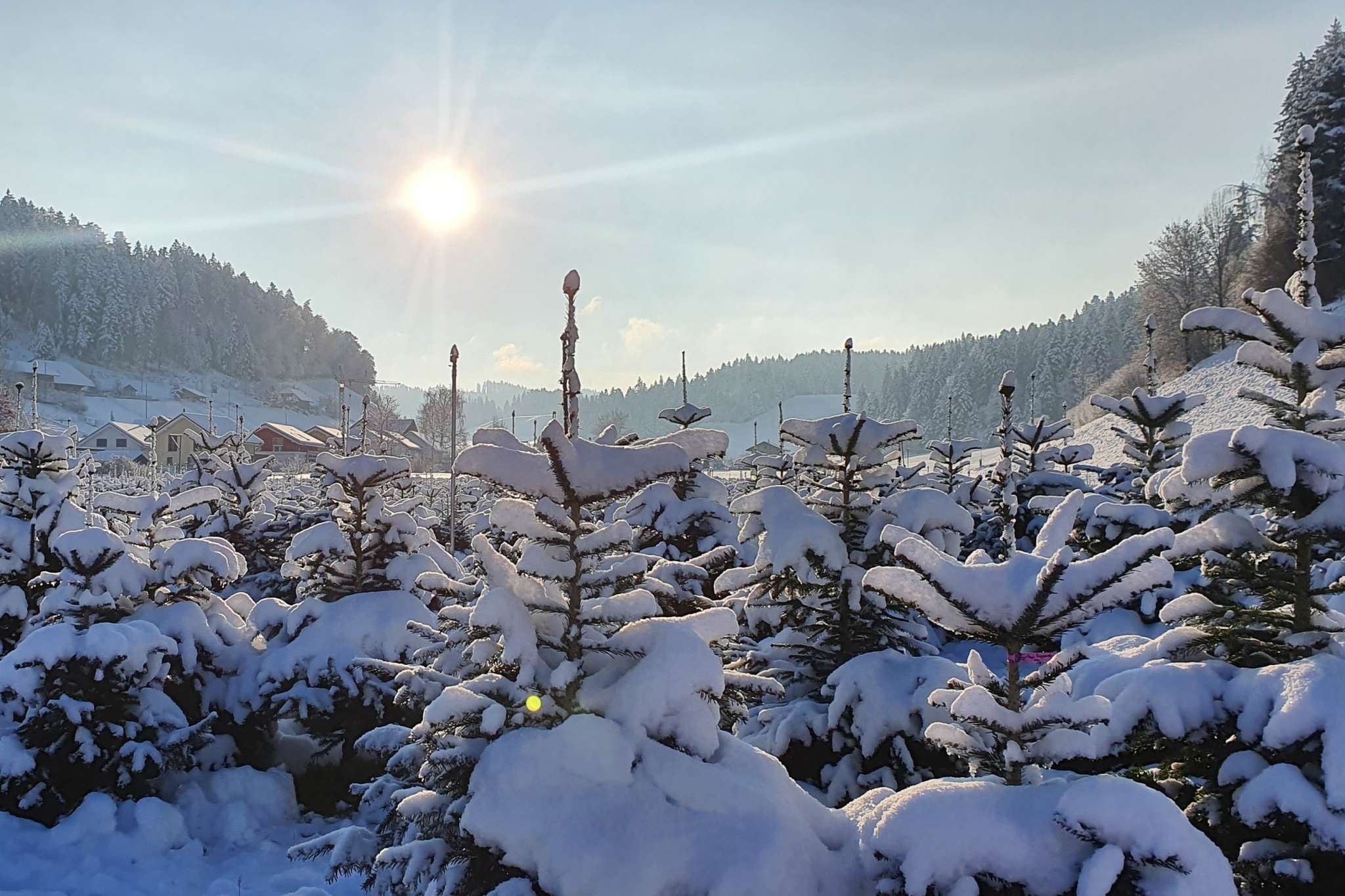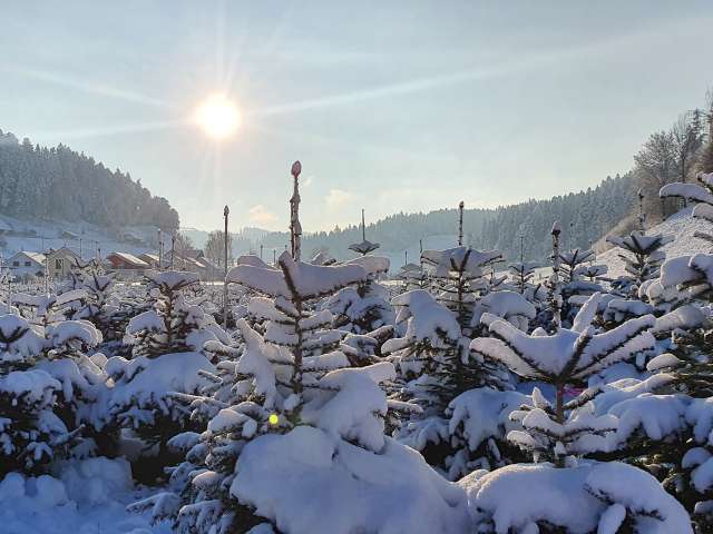 Herzlich willkommen auf dem kleinen Hof in Lützelflüh-Goldbach. Am Dorfrand von Goldbach wird ein kleiner Landwirtschaftsbetrieb mit einer Weihnachtsbaumplantage bewirtschaftet.
