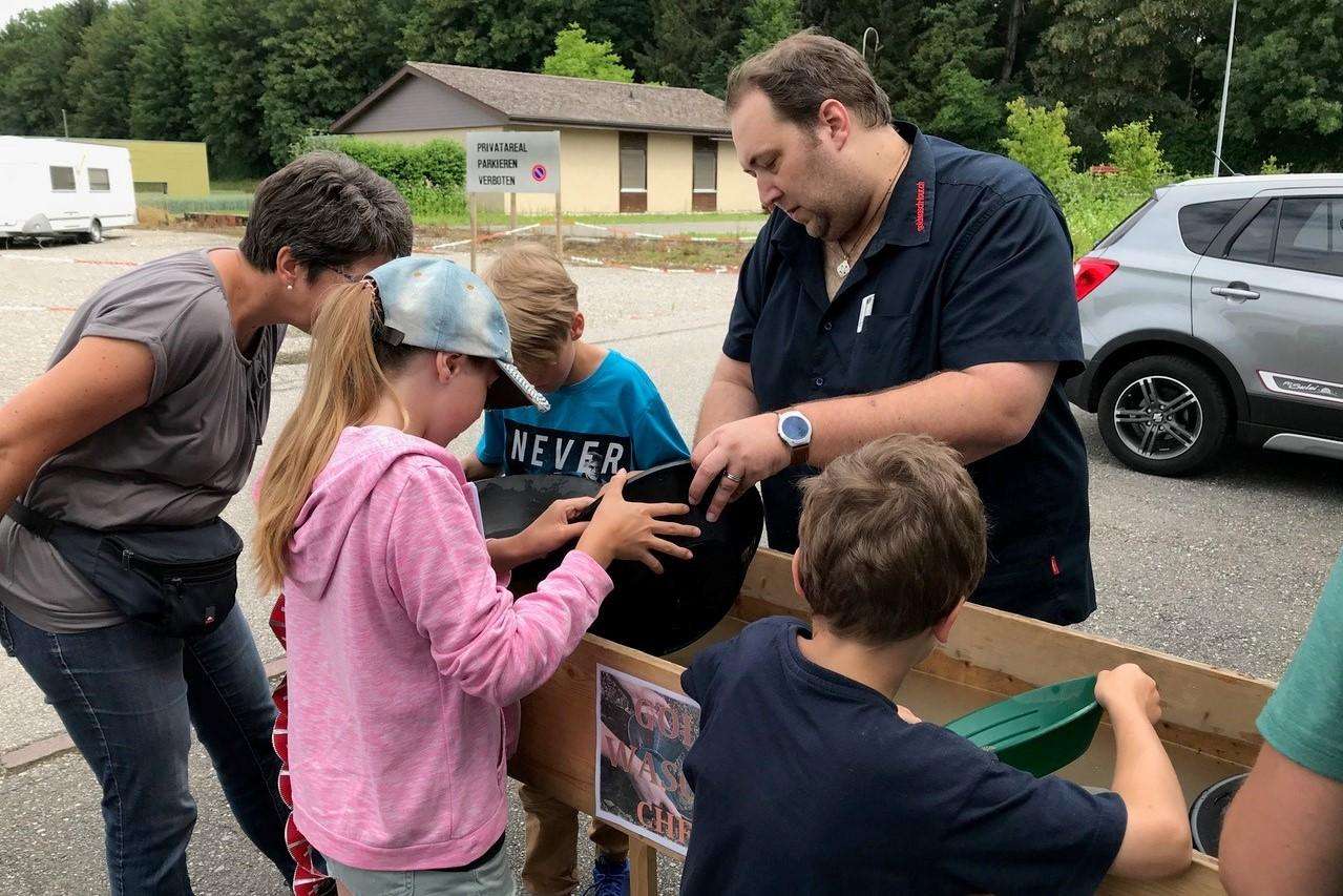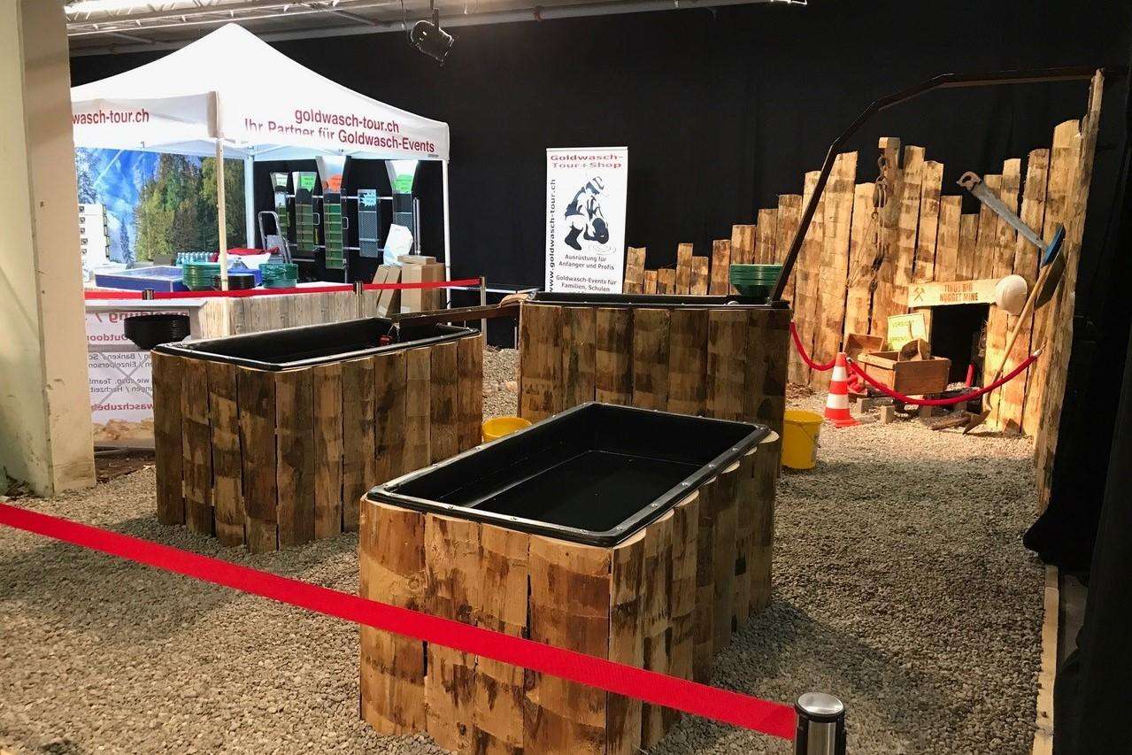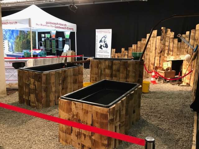 Kein Problem, für Firmen-, Familienfeste aber auch Grossveranstaltungen ist das mobile Goldwaschen verfügbar. Sogenanntes Indoor-Goldwaschen. An grossen Wasserbecken, vor einer Goldminen Kulisse, waschen Sie Ihr Gold. Ausgewaschen werden Sandportionen mit eingefügten schönen Goldflitter. Auf Wunsch werden auch, auf Ihren Anlass zutreffenden, Diplome für die fündigen Goldwäscher:innen ausgestellt.