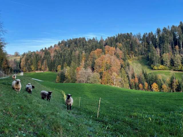 Gastgeber Gabriela und Niklaus bewirtschaften zusammen mit ihren Kindern und den Eltern den Hof auf 800 m.ü.m. Mit der Übernahme des Betriebes im 2022 wird eine Weiterentwicklung des Betriebes hin zu einer nachhaltigen und zukunftsorientierten Landwirtschaft angestrebt. Dabei stehen biologische sowie regenerative Bewirtschaftungsmassnahmen im Zentrum.