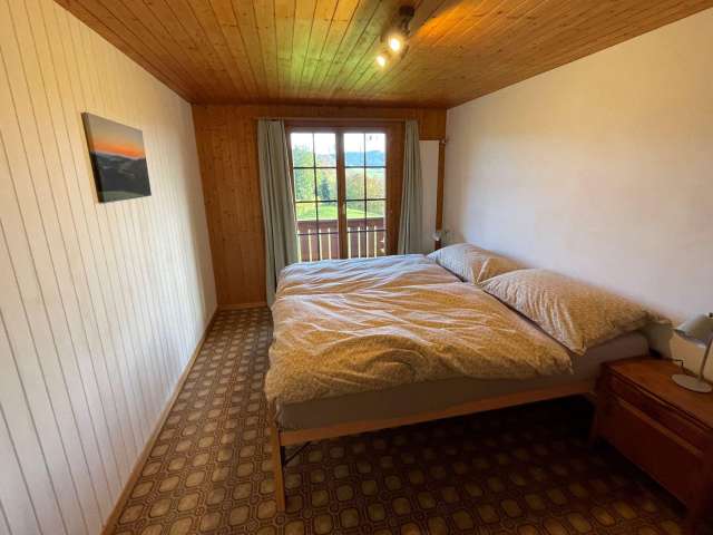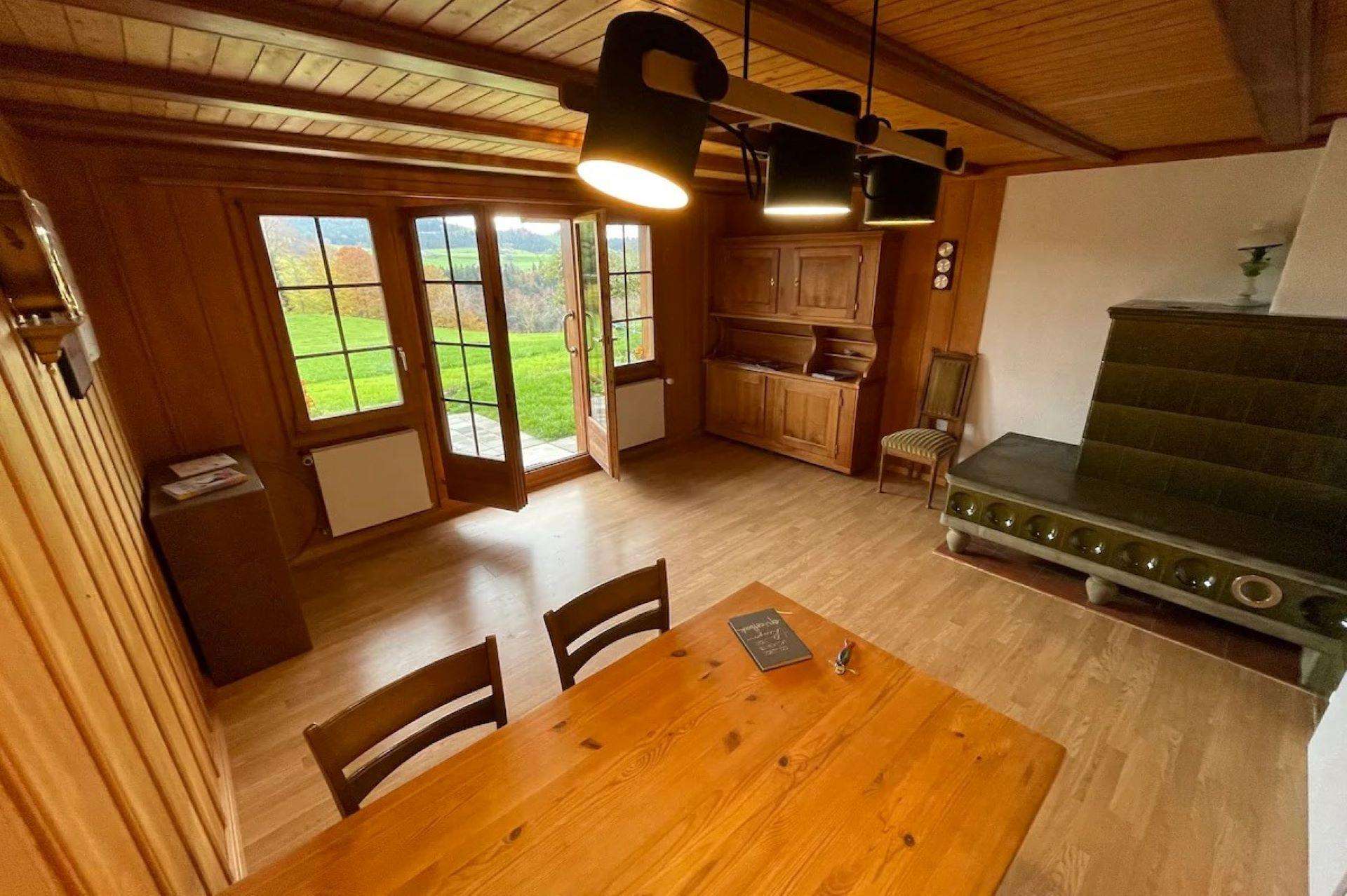 Mit viel Herzblut wurde das alte Stöckli im 2022 sanft saniert und liebevoll gestaltet. Die geräumige Ferienwohnung mit zwei Schlafzimmern und einem Kinderzimmer sowie zwei Wohnzimmern bietet Platz für bis zu 6 Erwachsene und zwei Kinder. Der Balkon bietet eine wunderschöne Aussicht in die Emmentaler Hügel und die westliche Alpenkette (Stockhorn bis Gantrisch). Die grosse Terrasse mit gedecktem Sitzplatz garantiert einen gemütlichen Aufenthalt. Gerne geben die Gastgeber auch einen Einblick und Auskunft über den Landwirtschaftlichen Alltag.