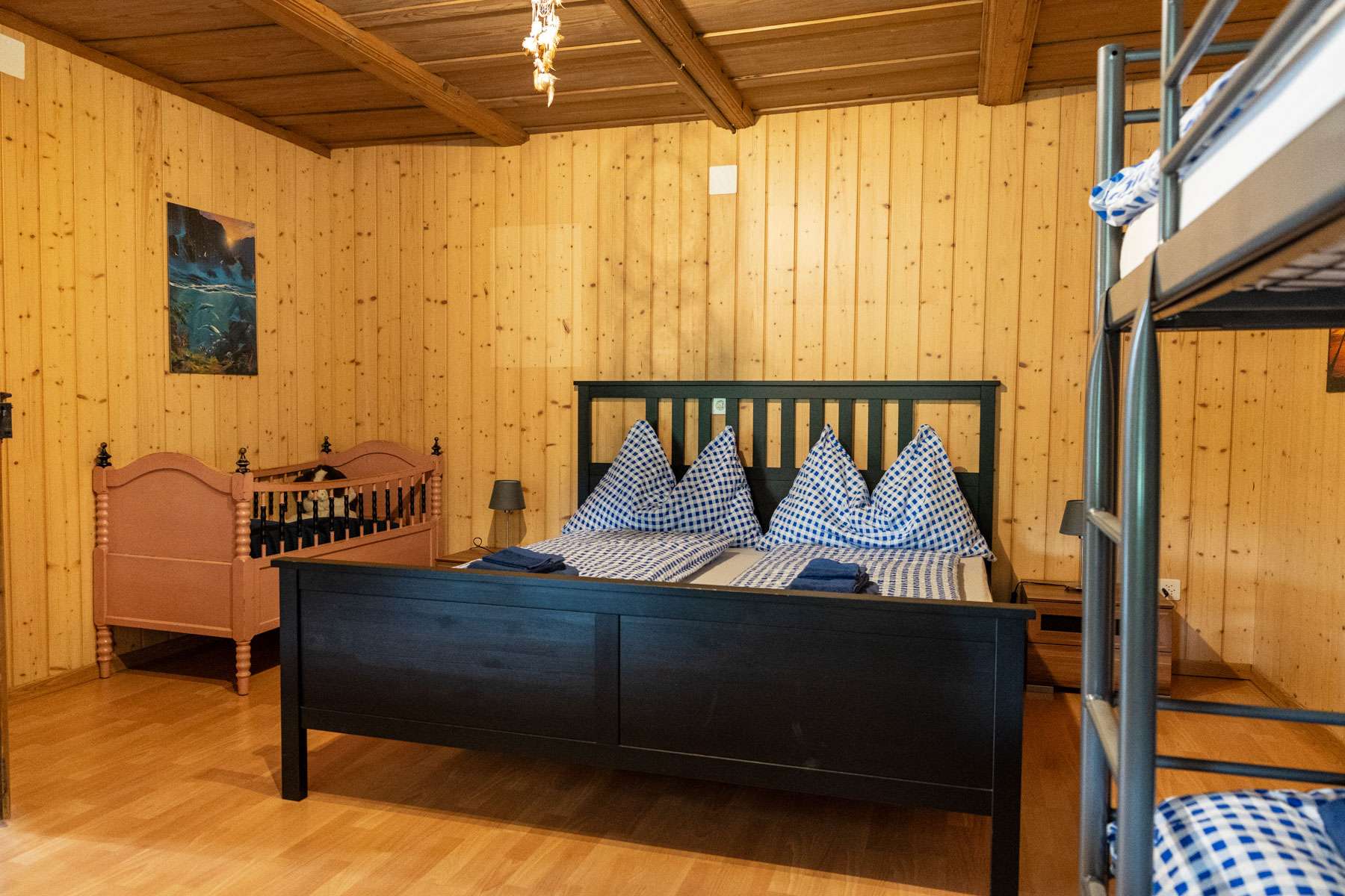 Hofhund Luna bewacht den Hof und meistens sind auch unsere Hofkatzen anzutreffen. Nach Lust und Laune können die Eltern mit den Kindern auf dem Hof reinschauen und die Tiere füttern und beobachten.