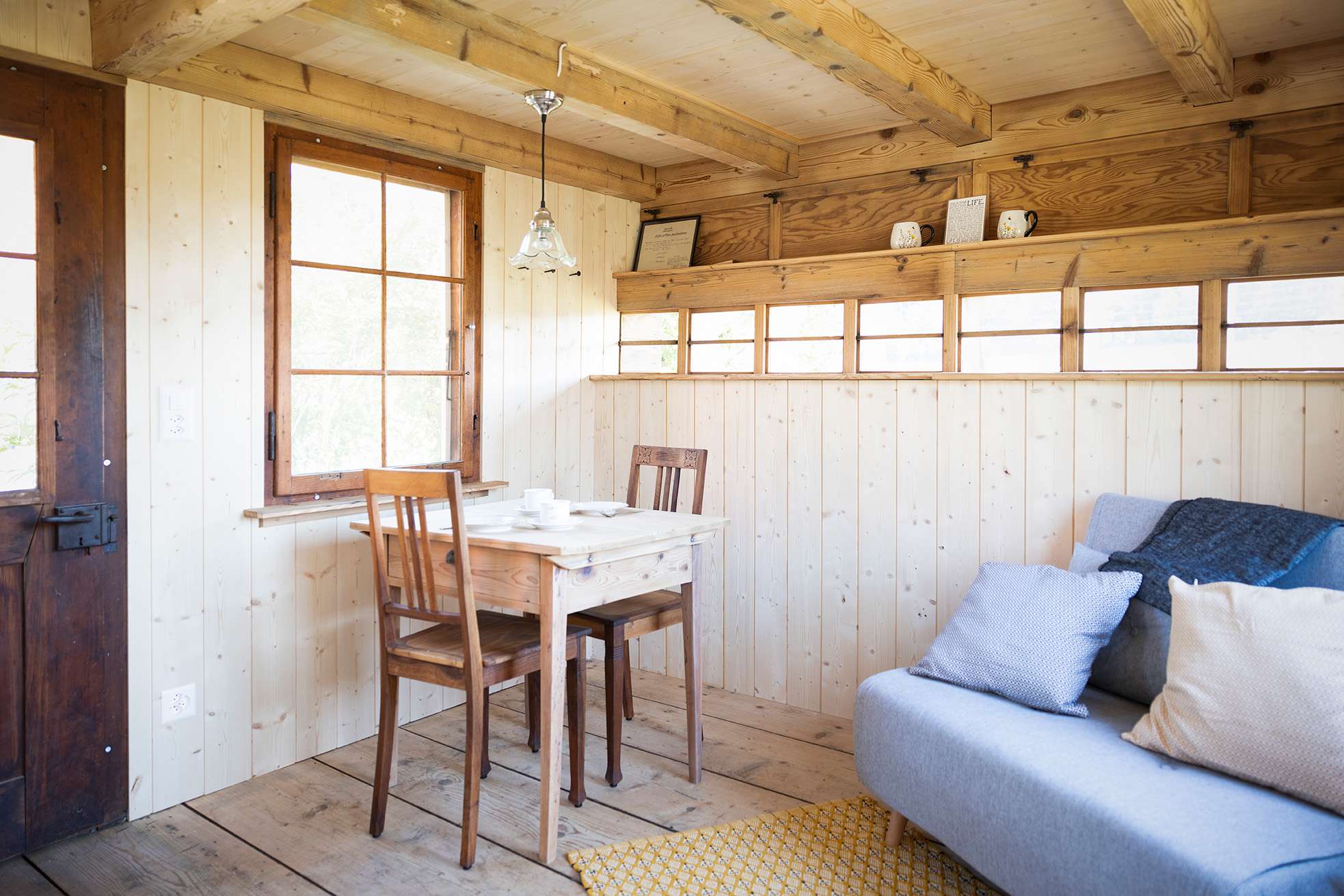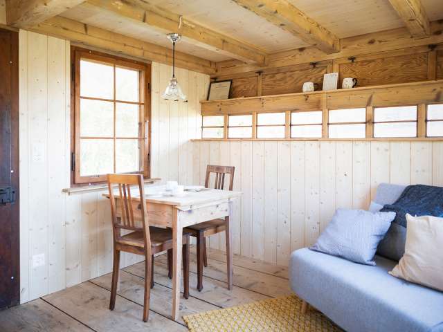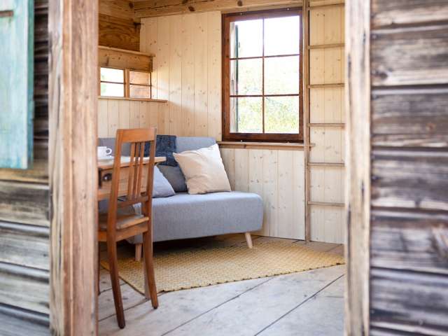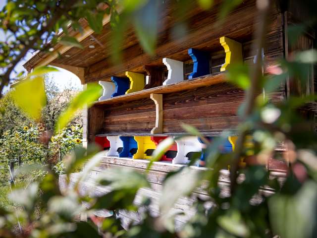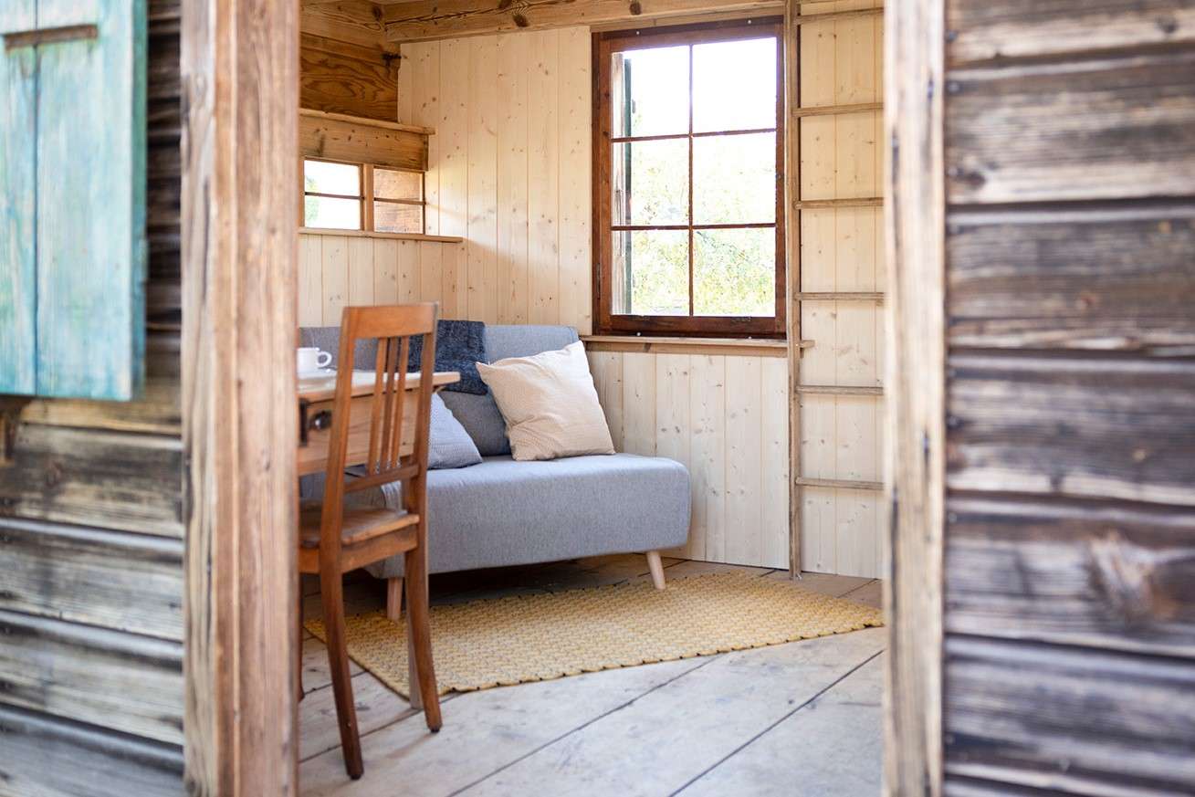 Das liebevoll umgebaute Bienenhäuschen bietet Auszeit-Atmosphäre auf 12m2. Wo früher die Bienen zuhause waren, dürfen Sie sich nun wohl fühlen. Feine Nasen riechen noch den Wachs-Duft in der Luft und historisch Interessierte finden an der Wand die gerahmte Bienenhäuschen-Baubewilligung aus dem Jahr 1943.