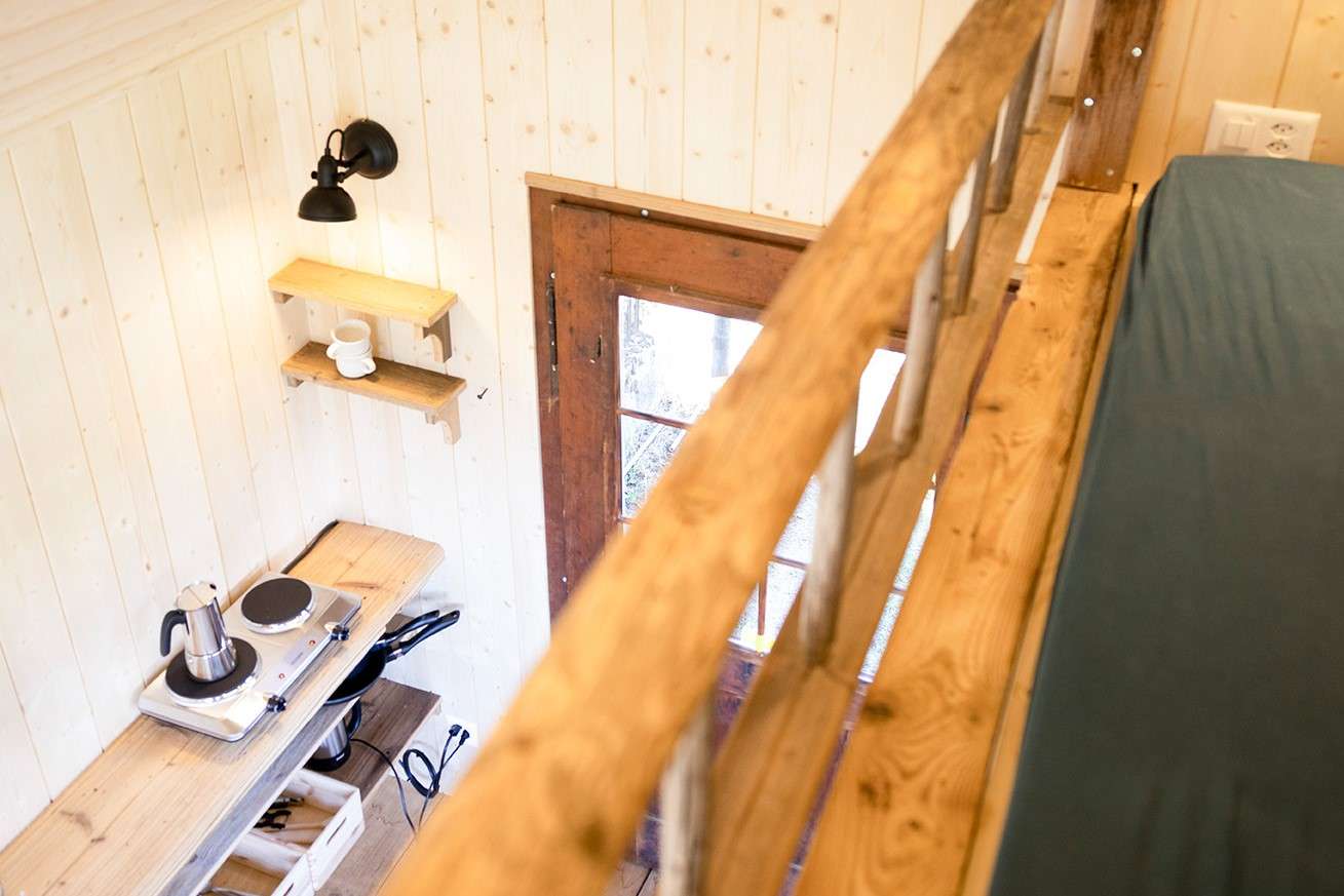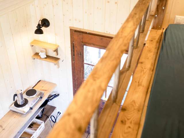 Das Bienenhäuschen hat eine Galerie mit einer 1.40x2.0m Matratze und ein ausziehbares Schlafsofa. Die Nasszelle mit WC, Dusche und Waschtisch liegt in 20m Entfernung. Das Bienenhaus ist mit Geschirr, 2 Herdplatten, einem kleinen Kühlschrank und einem Schwedenofen ausgestattet. Auf Wunsch servieren wir ein reichhaltiges Frühstück. «Lisus Gärtli» mit wunderschönen Blumen und üppigem Gemüse, bildet zusammen mit dem schönen Bauernhaus die Kulisse für das kleine Bienenhäuschen. Alles eingebettet in die weichen, grünen Hügel des vorderen Emmentals. Ferien-Feeling Pur. Für die absolute Entspannung gibt es noch die Option, den Tag in der mit Feuer beheizten Outdoor Badewanne ausklingen zu lassen. Wunderbare Voraussetzungen um wunschlos glücklich im kuscheligen Bienenhäuschen einzuschlafen.