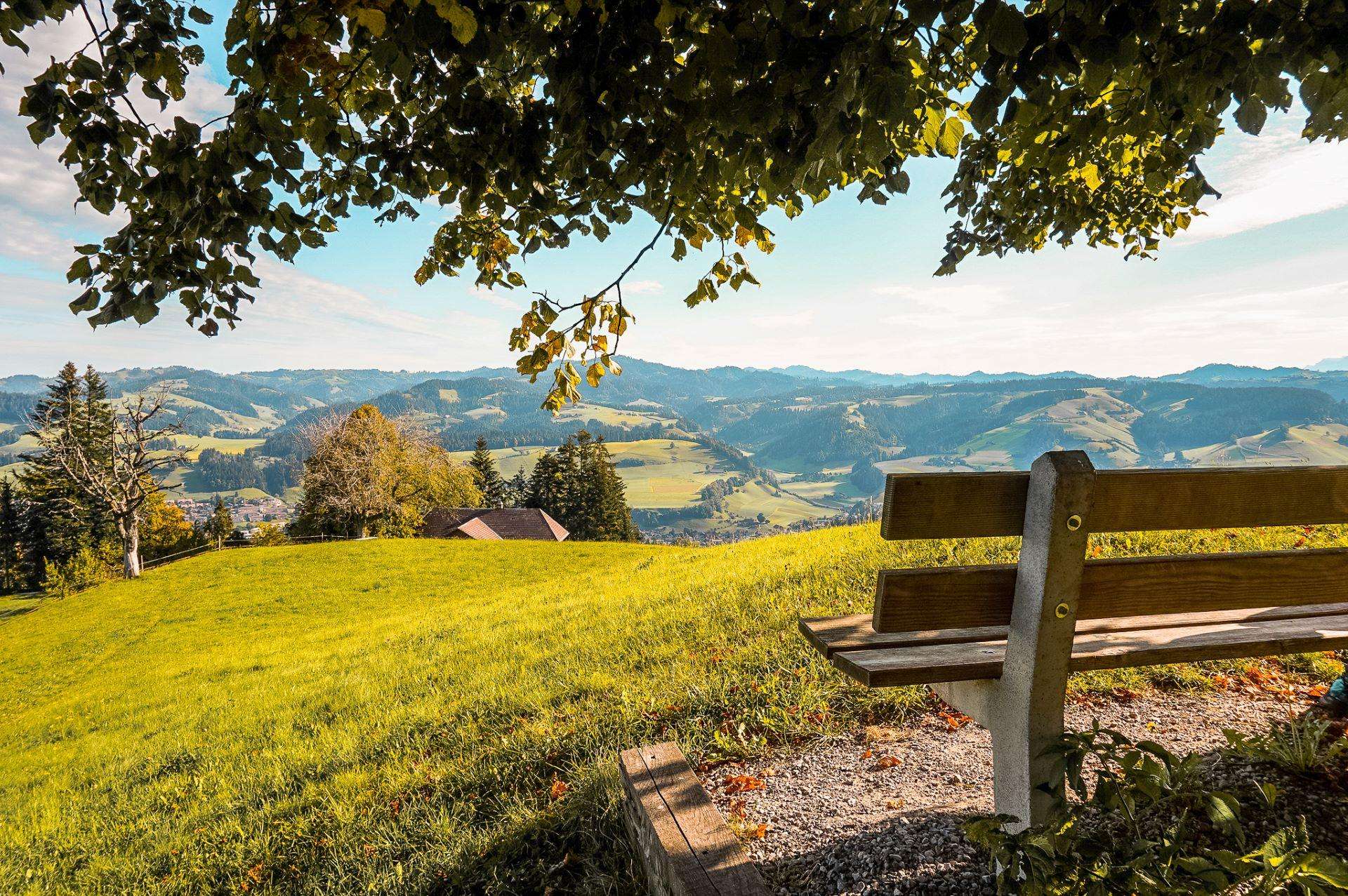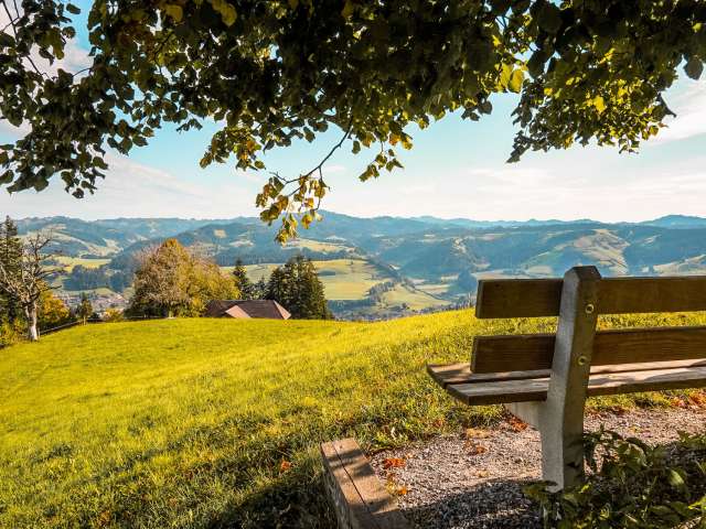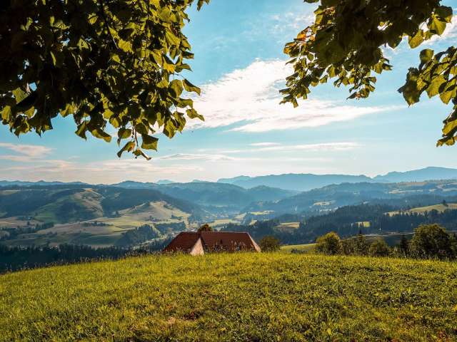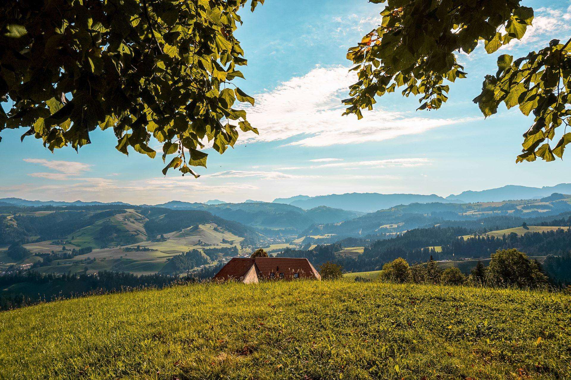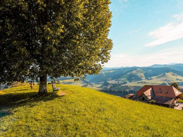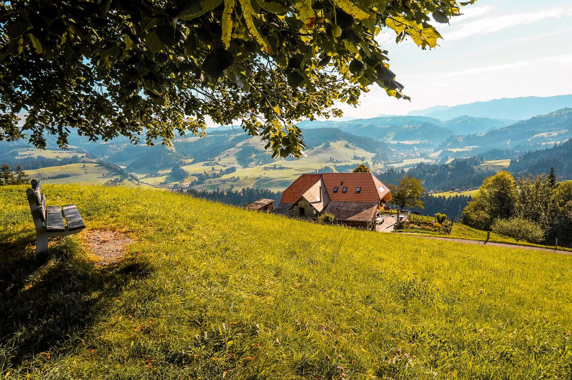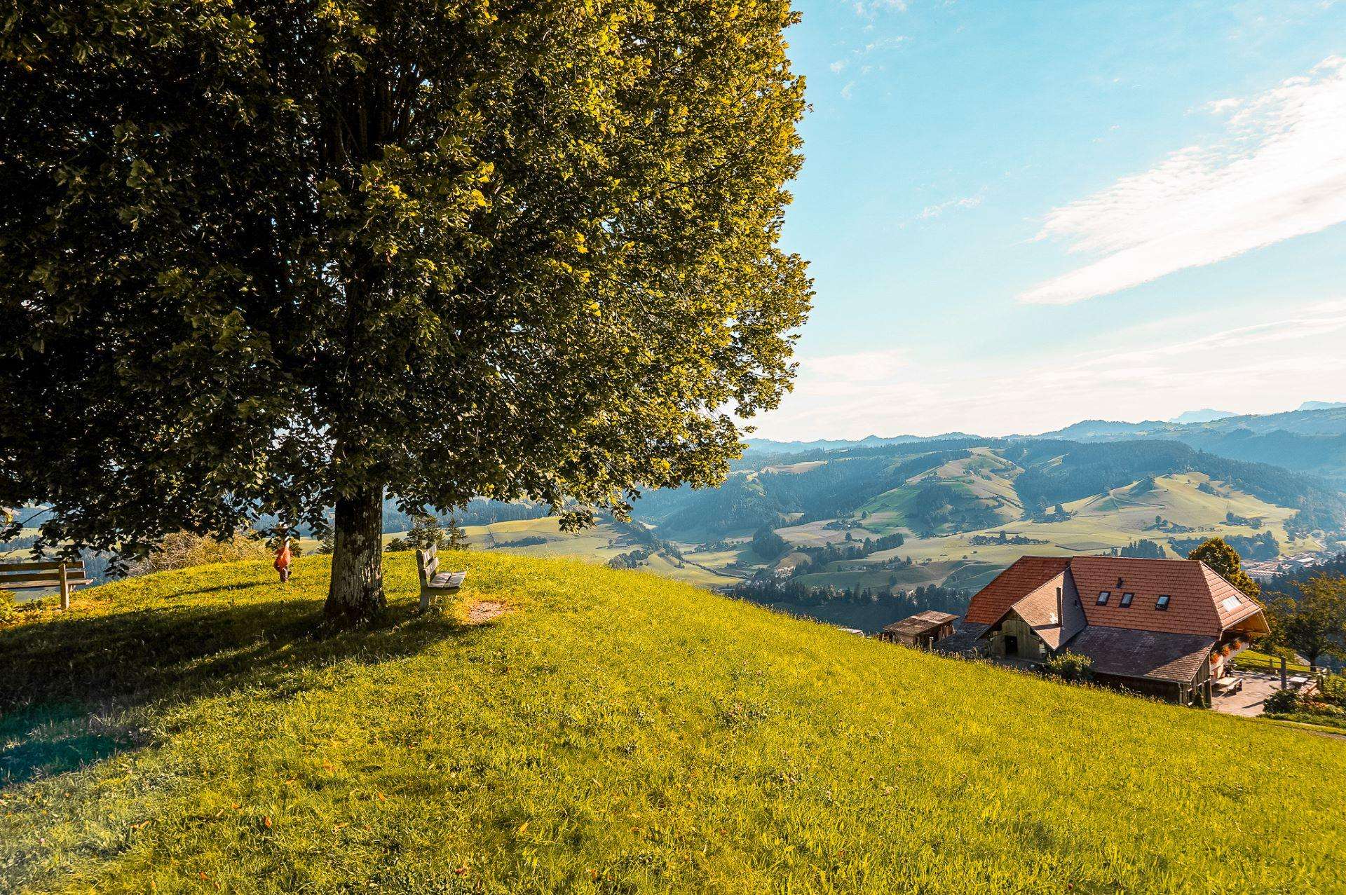 Behäbige Bauernhäuser, verschlungene Waldpfade, aussichtsreiche Höhenwege sowie malerische Ausblicke zur Stockhornkette und zum Hohgant.