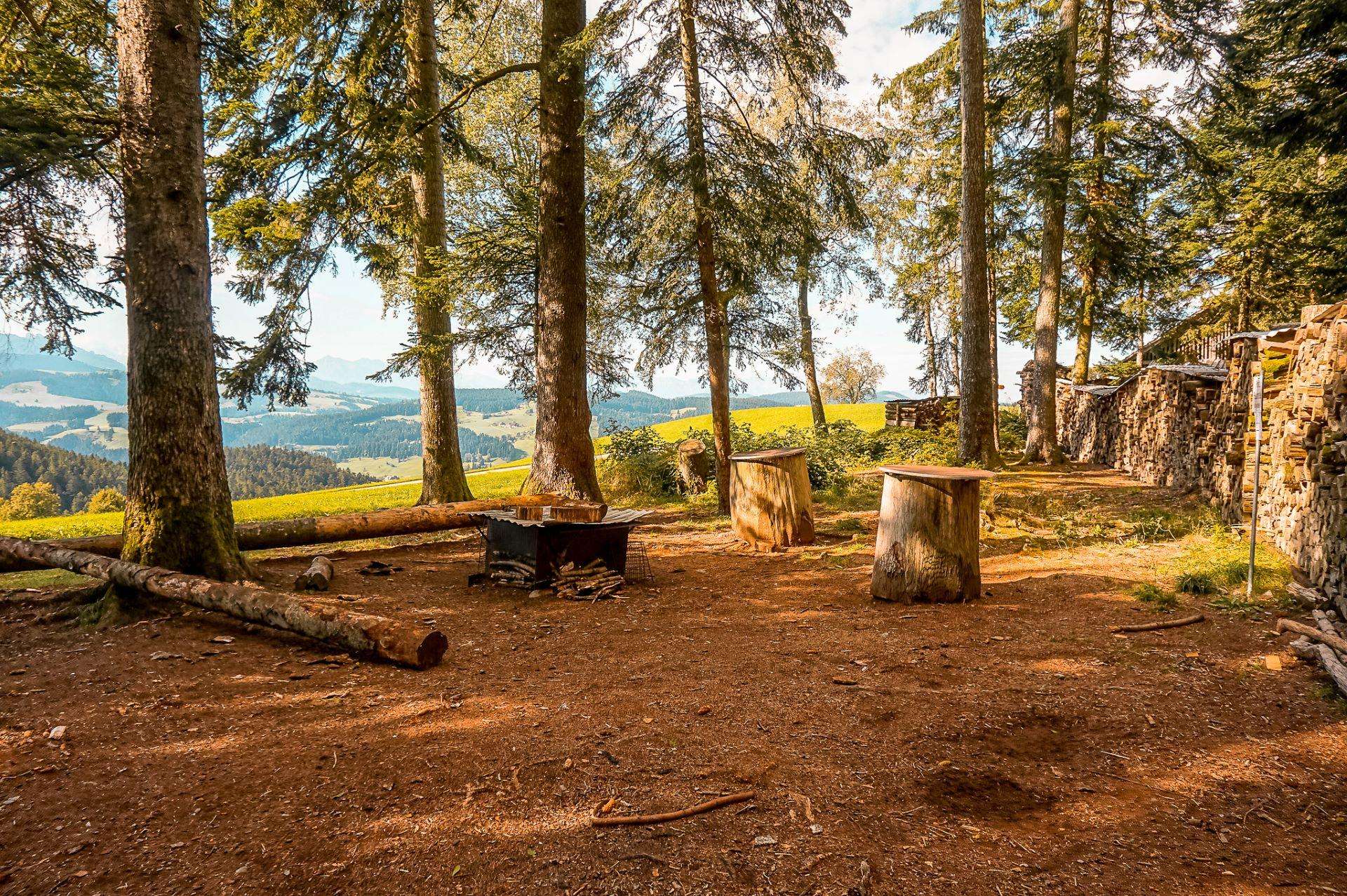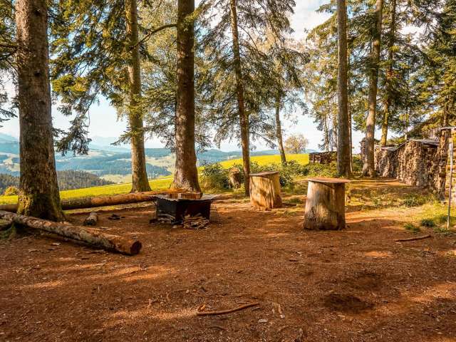 Etwa 1 Kilometer vom Aussichtspunkt entfernt, beim Wegweiser Scheidegg befindet sich der Picknickplatz Scheidegg, Eggiwil (Brätlistellen.ch). Hier kann man auch schöne Ausblicke auf die Alpen geniessen.