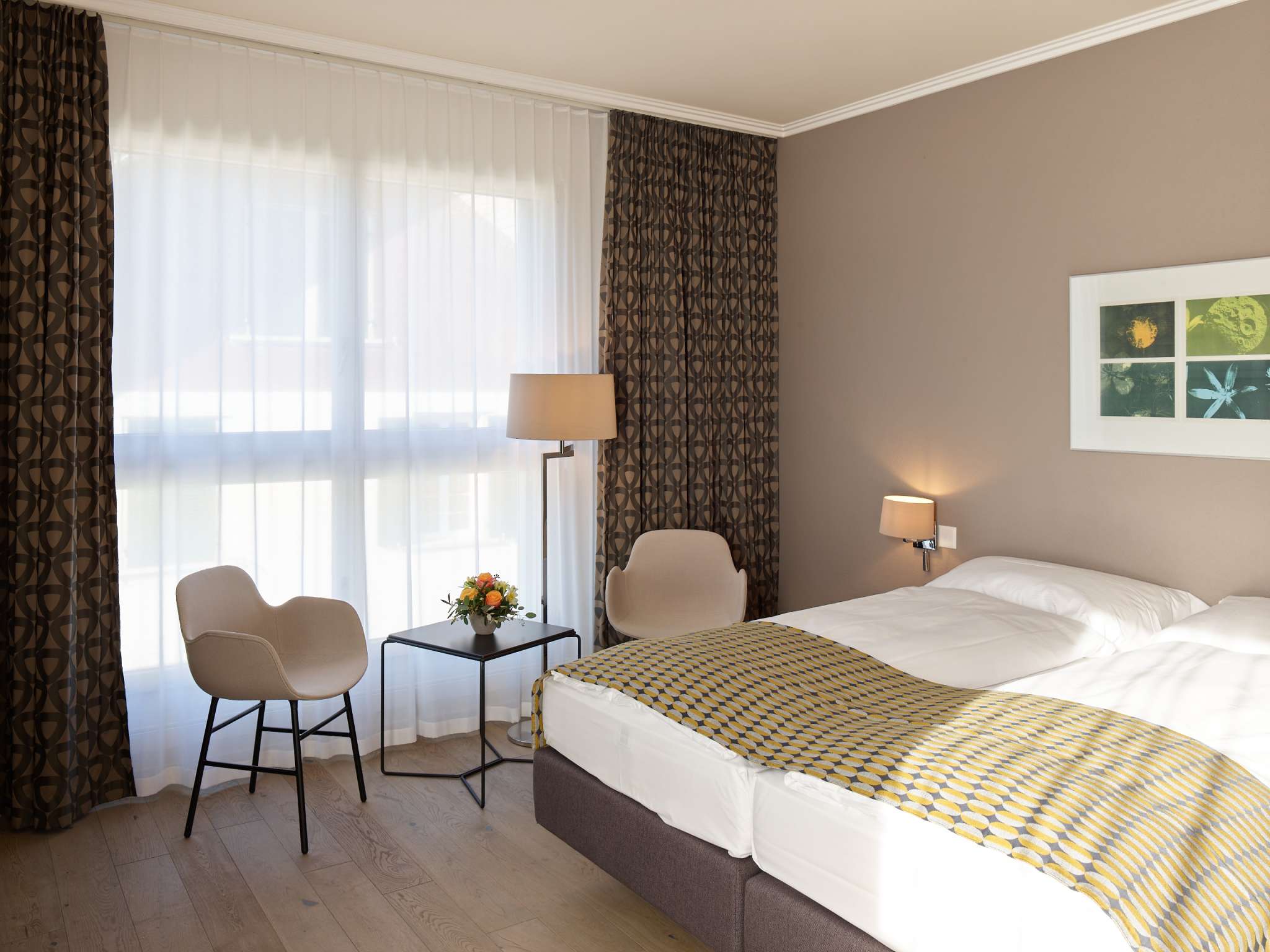 Hotel Die 36 modernen und geschmackvoll eingerichteten Gästezimmer bieten jenen Komfort, den sich Geschäfts- und Ferienreisende heute wünschen. Die Akzente, die der Burgdorfer Künstler Andreas Althaus durch Farben und Formen gesetzt hat, verleihen den Räumlichkeiten die besondere Note, welche das Hotel Berchtold so unverwechselbar macht. Sämtliche Zimmer sind Nichtraucher-Zimmer. Die Business-Zimmer verfügen über einen Balkon, auf welchem Sie Ihre Zigarren oder Zigaretten selbstverständlich geniessen können. Der gemütliche Raucherbalkon im Erdgeschoss steht allen zur Verfügung.