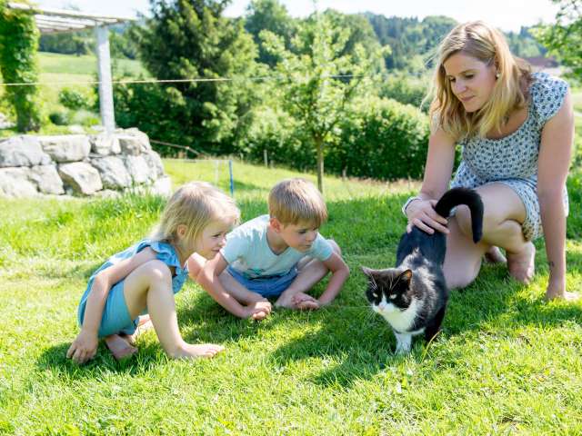 Die Zimmer sind grosszügig angelegt. Es stehen eine moderne Küche und neue Sanitäranlagen zur Verfügung. Die Aussenanlage mit Pergola, Sitzplatz, Spiel-und Liegewiese, Kneippbrunnen und Barfussweg bietet viel Abwechslung. Auch die Hofeigener Sauna steht den Gästen zur Verfügung.