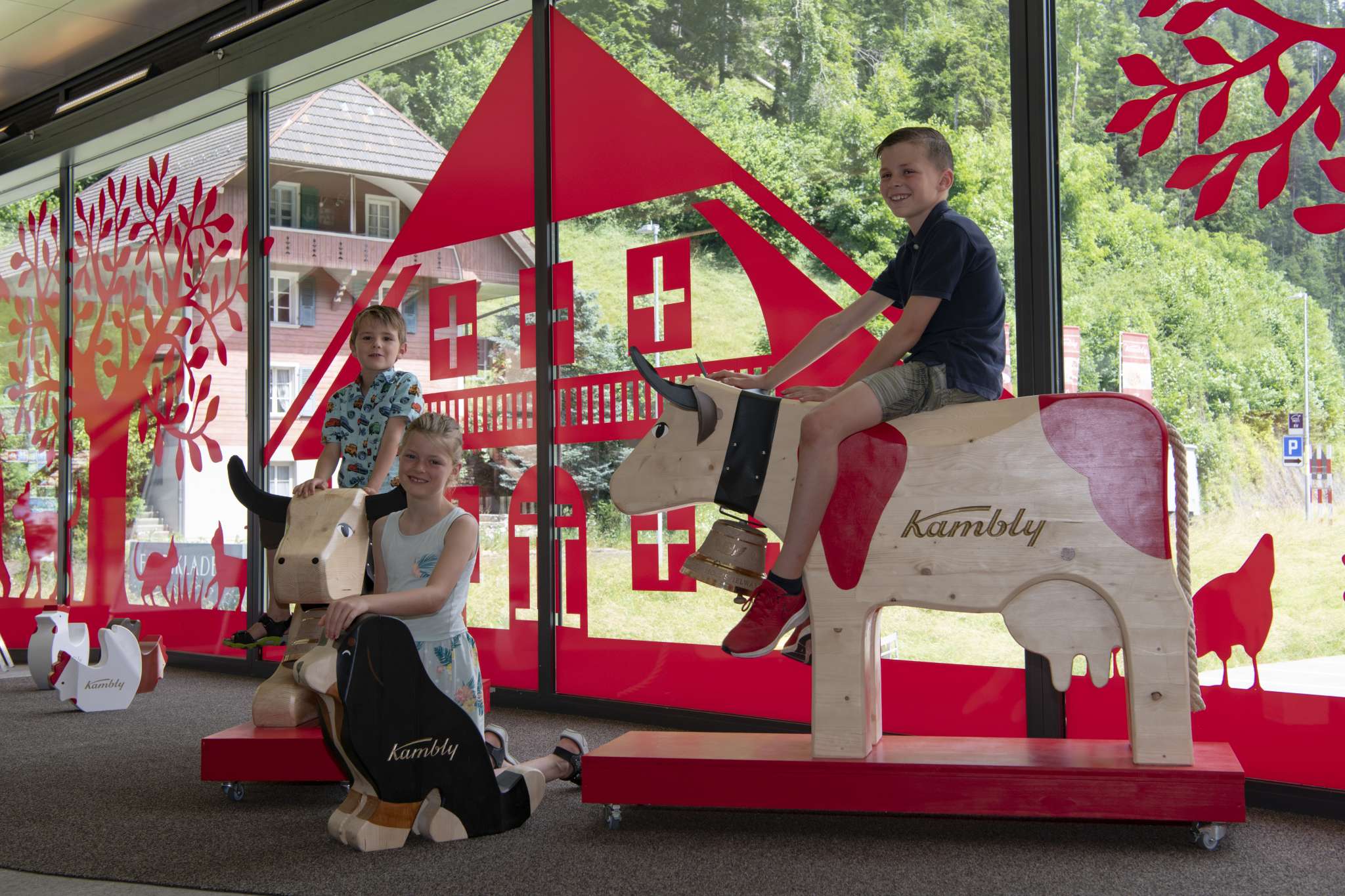 Tauchen Sie ein in die Welt von Kambly und besuchen Sie die Erlebniswelt in Trubschachen im oberen Emmental. Tauchen Sie im Kambly Erlebnis in Trubschachen ein in die Welt von Kambly und entdecken Sie die traditionsreiche Geschichte des Familienunternehmens an interaktiven Erlebnis-Stationen. In der Schauconfiserie dürfen Sie den Maîtres Confiseurs über die Schultern sehen und im Fabrikladen finden Sie bestimmt Ihre Lieblingsbiscuit im vielfältigen Sortiment. Zum 111-Jahr Jubiläum von Kambly wurde die Erlebniswelt aufgefrischt und überrascht Sie mit neuen Attraktionen. Betreten Sie das Kambly Erlebnis durch ein typisches Emmentaler Bauernhaus, wo Sie von Hoftieren begrüsst werden.