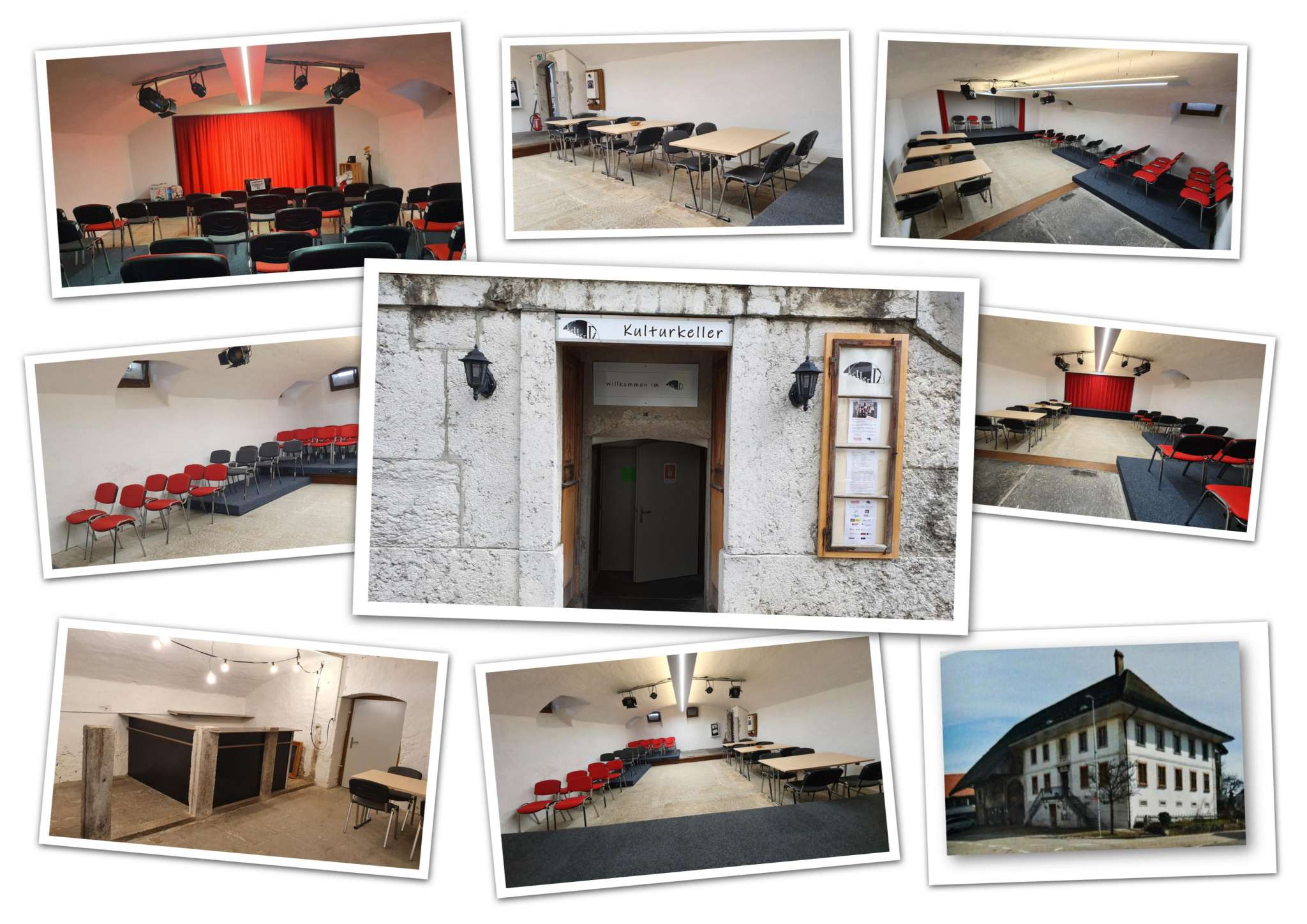 Der grössere Keller hat eine Bühne und entsprechende Infrastruktur, sowie Beamer und Leinwand. Genügend Parkplätze sind vorhanden.