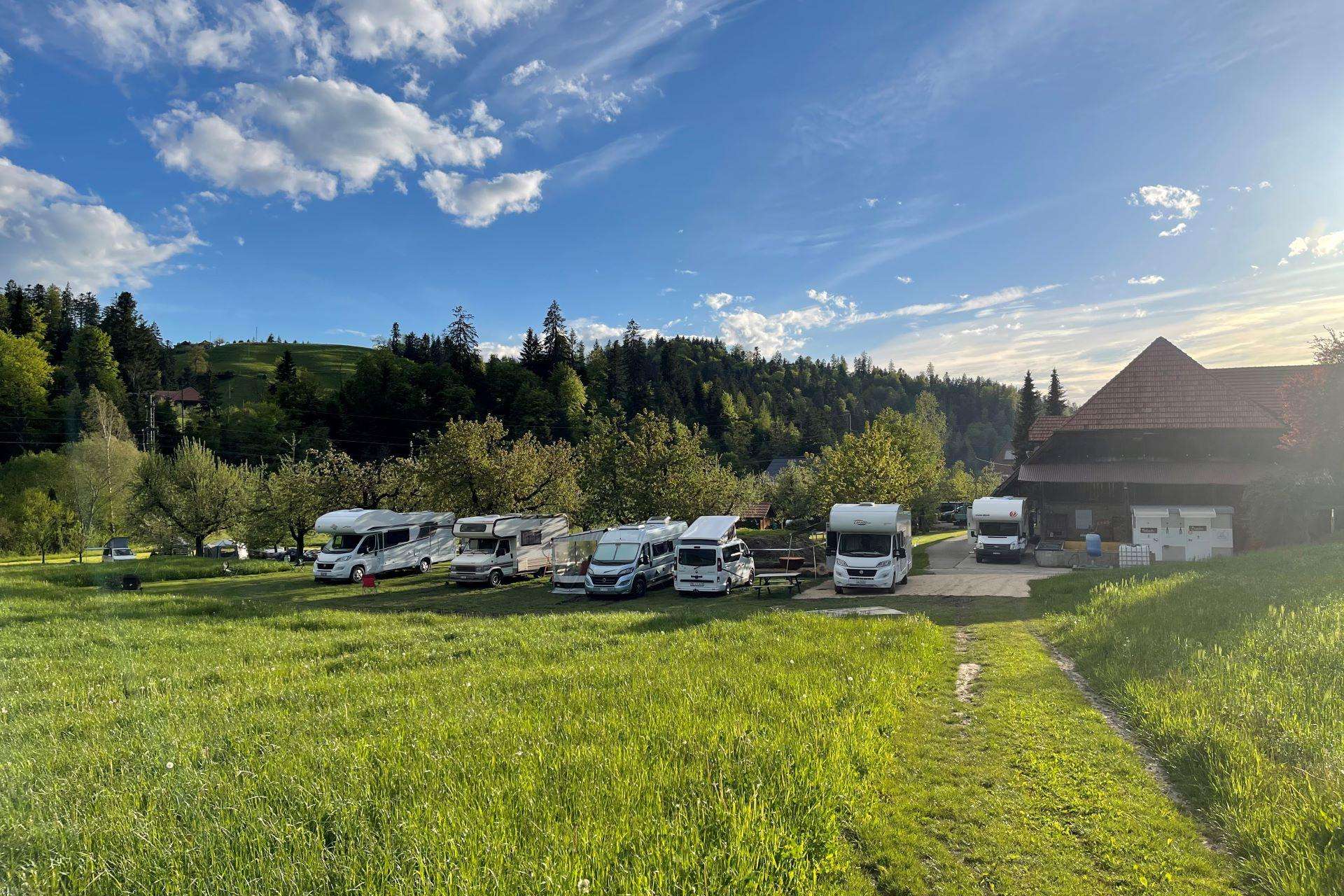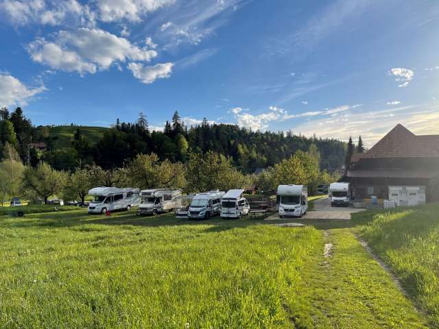 Bei den Kirschbäumen der Hoschtet sind Stellplätze für Wohnwagen, Wohnmobile und Campingbusse buchbar.